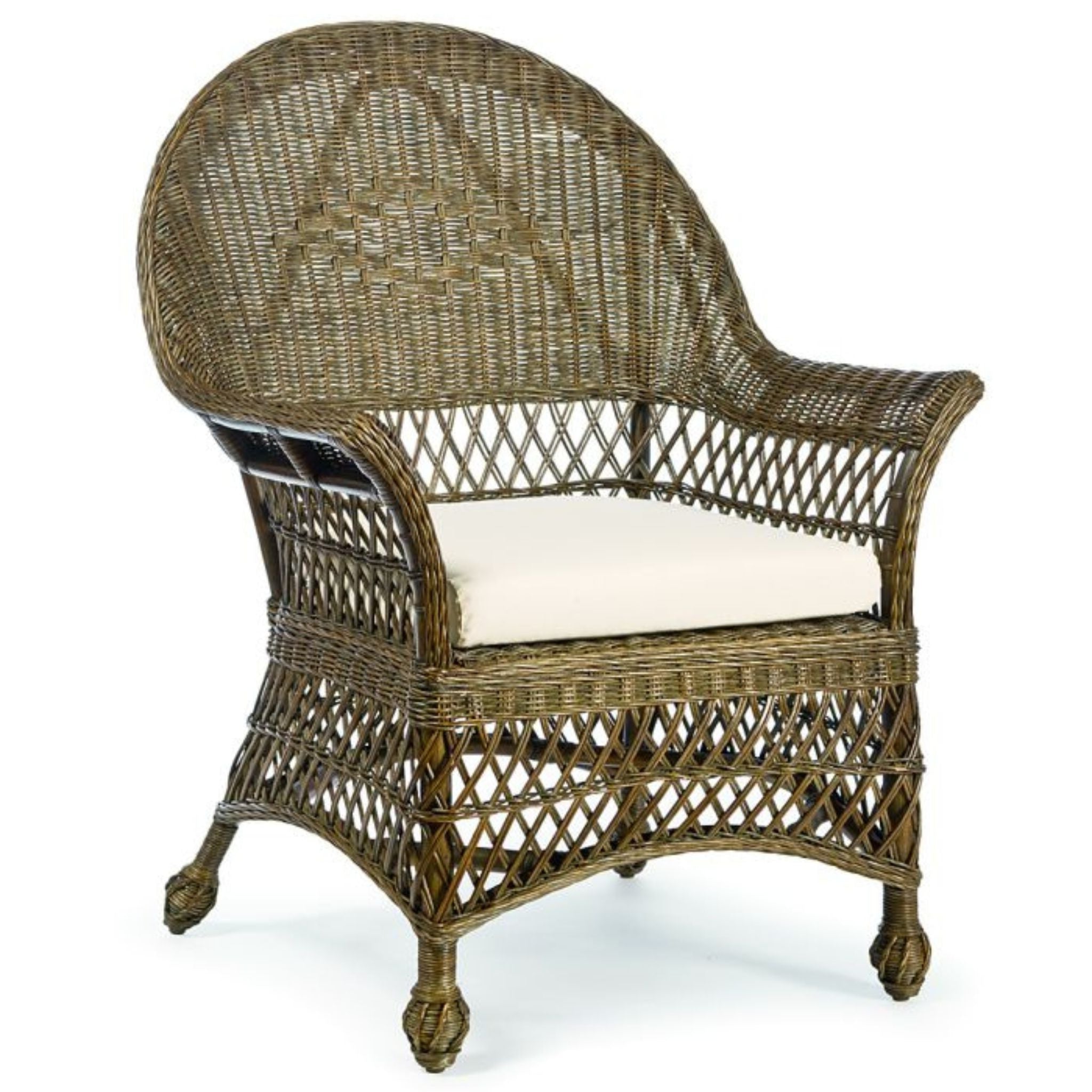 Handwoven from durable solid rattan, the Martha's Vineyard Chair exudes coastal elegance with its open-weave design and timeless silhouette. Measuring 31" W x 30.5" D x 40" H, it offers customizable finishes and optional cushions, making it a versatile addition to both classic and contemporary interiors.