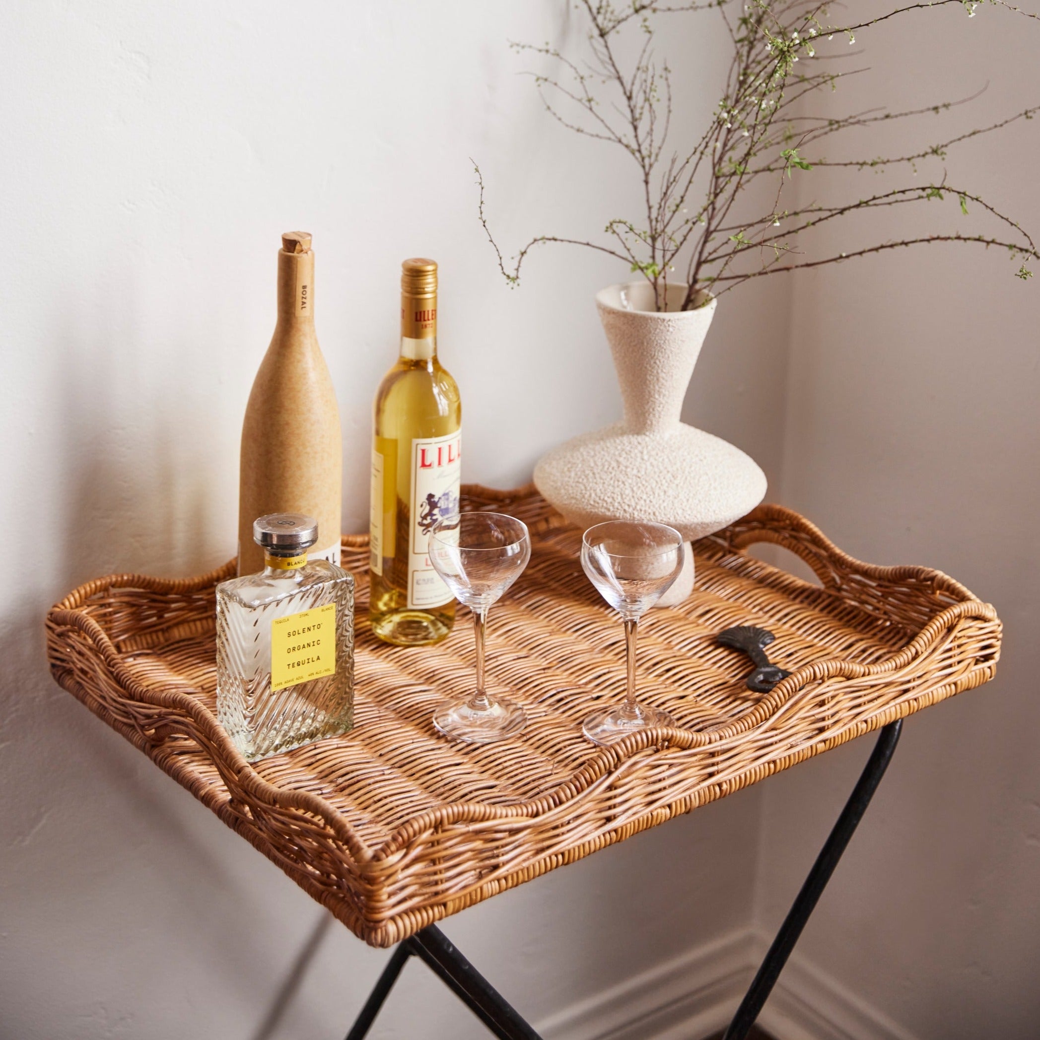Discover the perfect blend of classic craftsmanship and modern style with our Maude Scallop Butler Tray. This tray effortlessly combines age-old wickerwork tradition with a sleek, foldable iron base and removable serving tray. Whether you fill it with flowers, spirits, or your favorite barware, this versatile piece is sure to add a touch of elegance to your space.