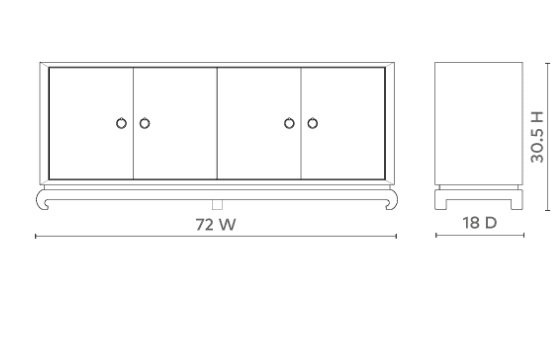 The Meredith cabinet combines a solid geometric rectangular case with a whimsical and delicate curving chow foot. This stylish piece can grace any study or dining room holding everything from AV components to dishes and glasses.