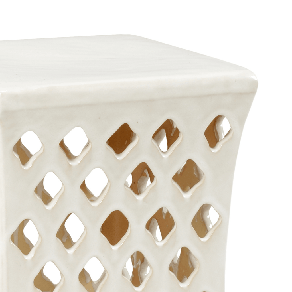 Meredith White Glaze Pierced Ceramic Garden Seat