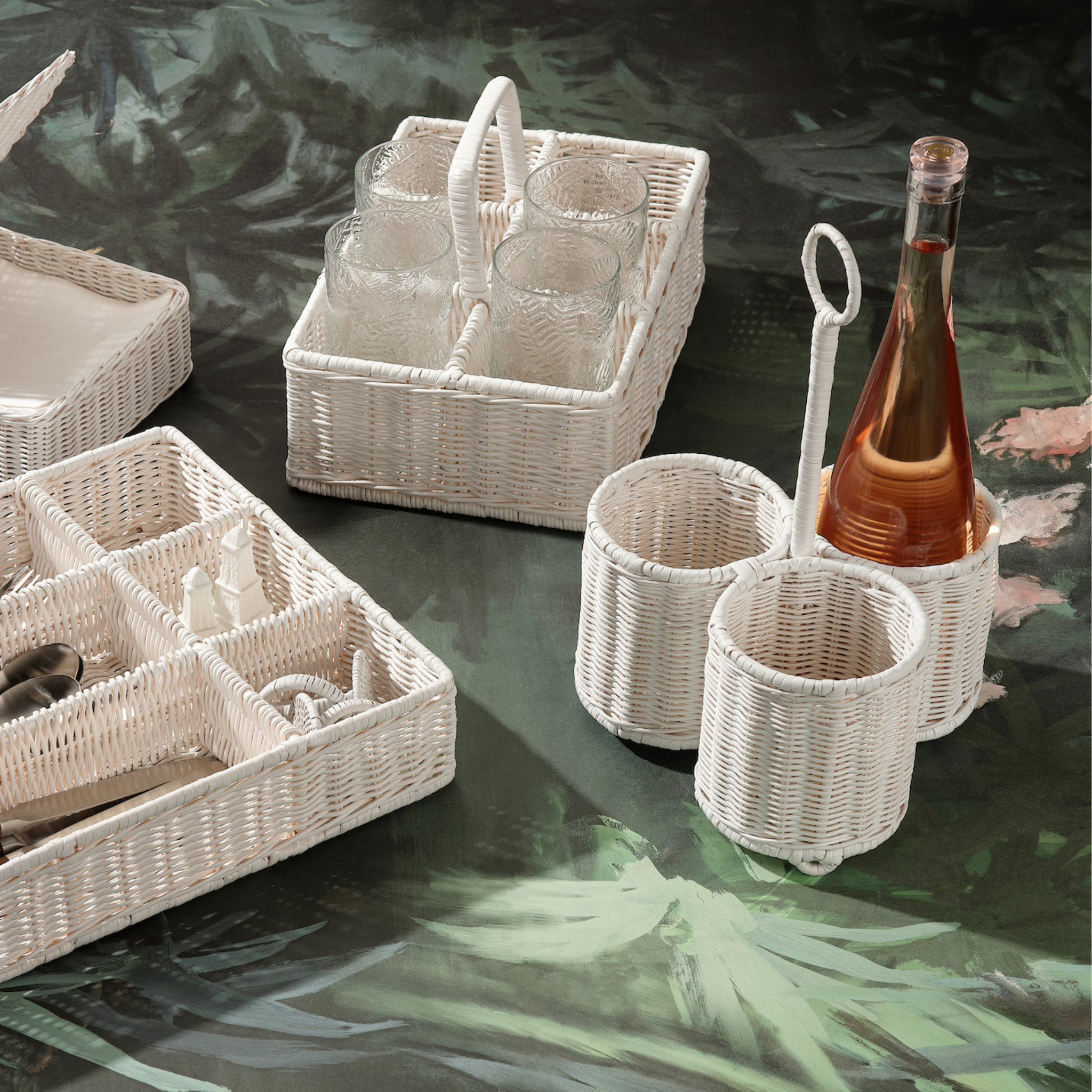 Micaela White Rattan Wine Caddy