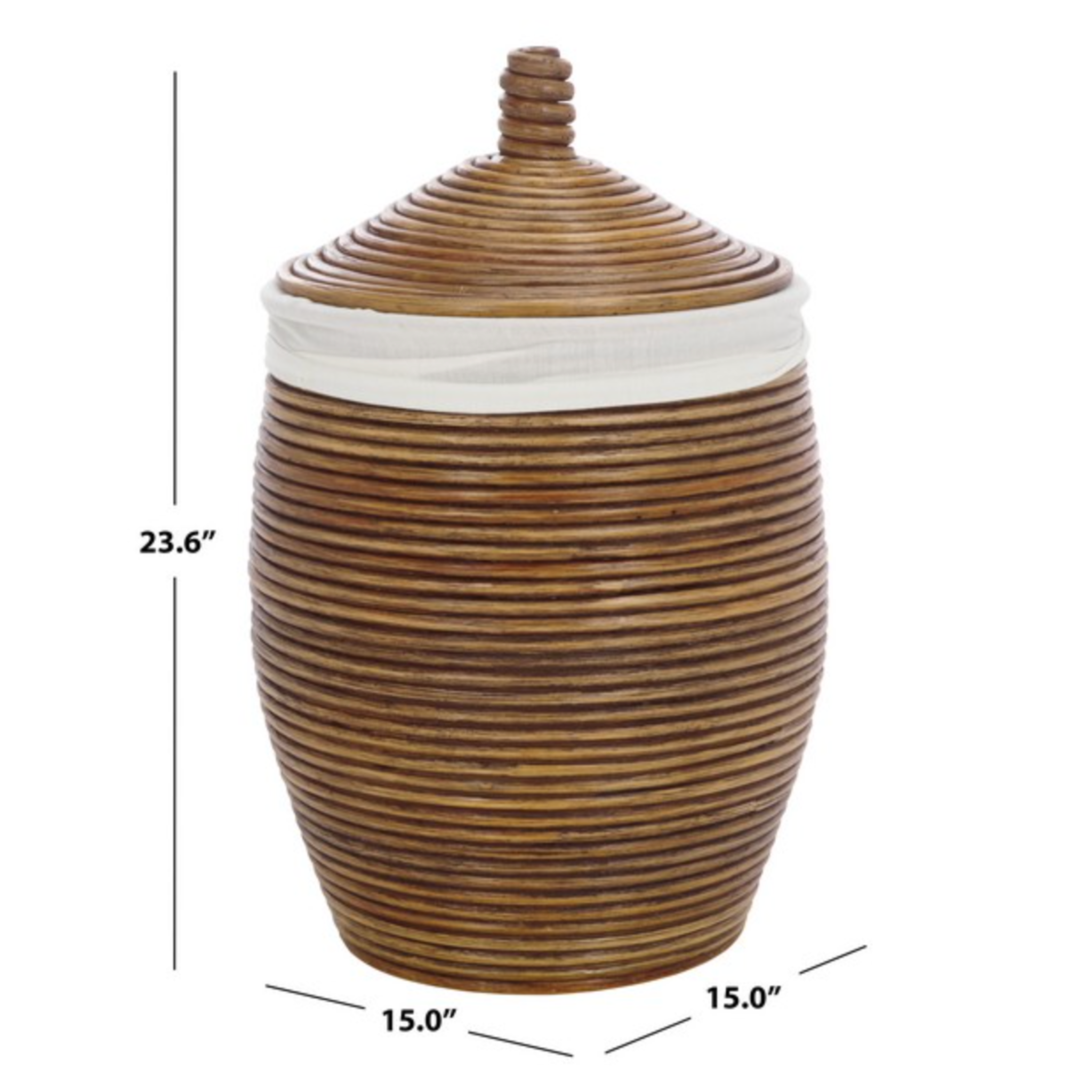 Introducing the Mikkel laundry basket – where practicality meets style. Crafted with care in a warm honey-brown wash and crisp white, this basket combines smart functionality with a charming aesthetic. Expertly woven from durable rattan and lined with soft fabric, the Mikkel Laundry Basket offers a lightweight yet sturdy solution for all your laundry needs. Its strength and thoughtful design turn it from a simple utility item into a standout piece of home decor. Click on images for greater detail.