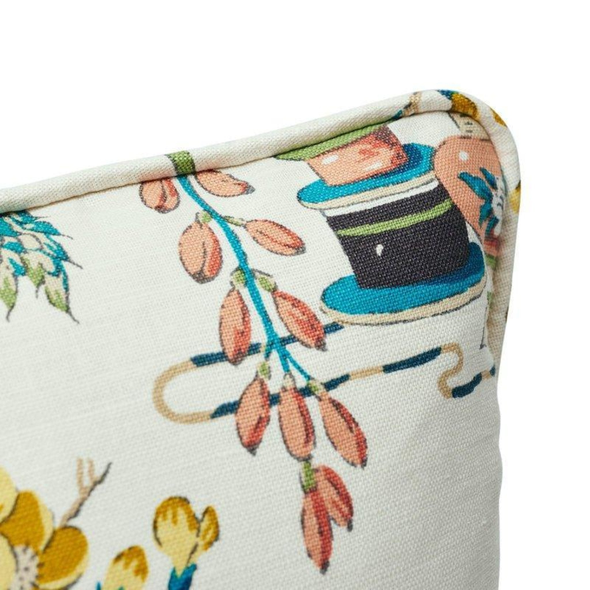 This pillow features Schumacher Ming Vase with a self-welt finish. Traditional motifs come out to play in this cheerful design that evokes a different mood with each colorway.