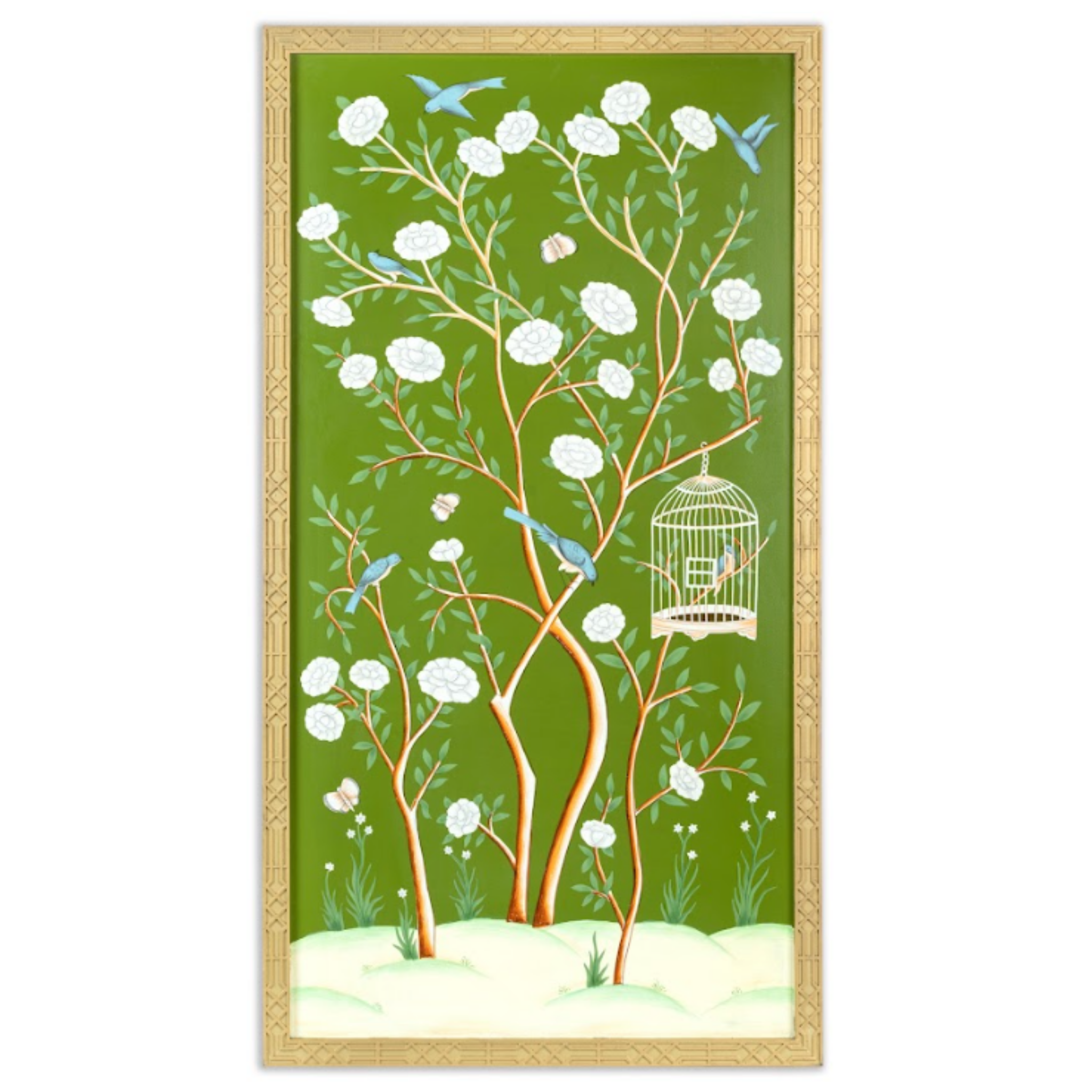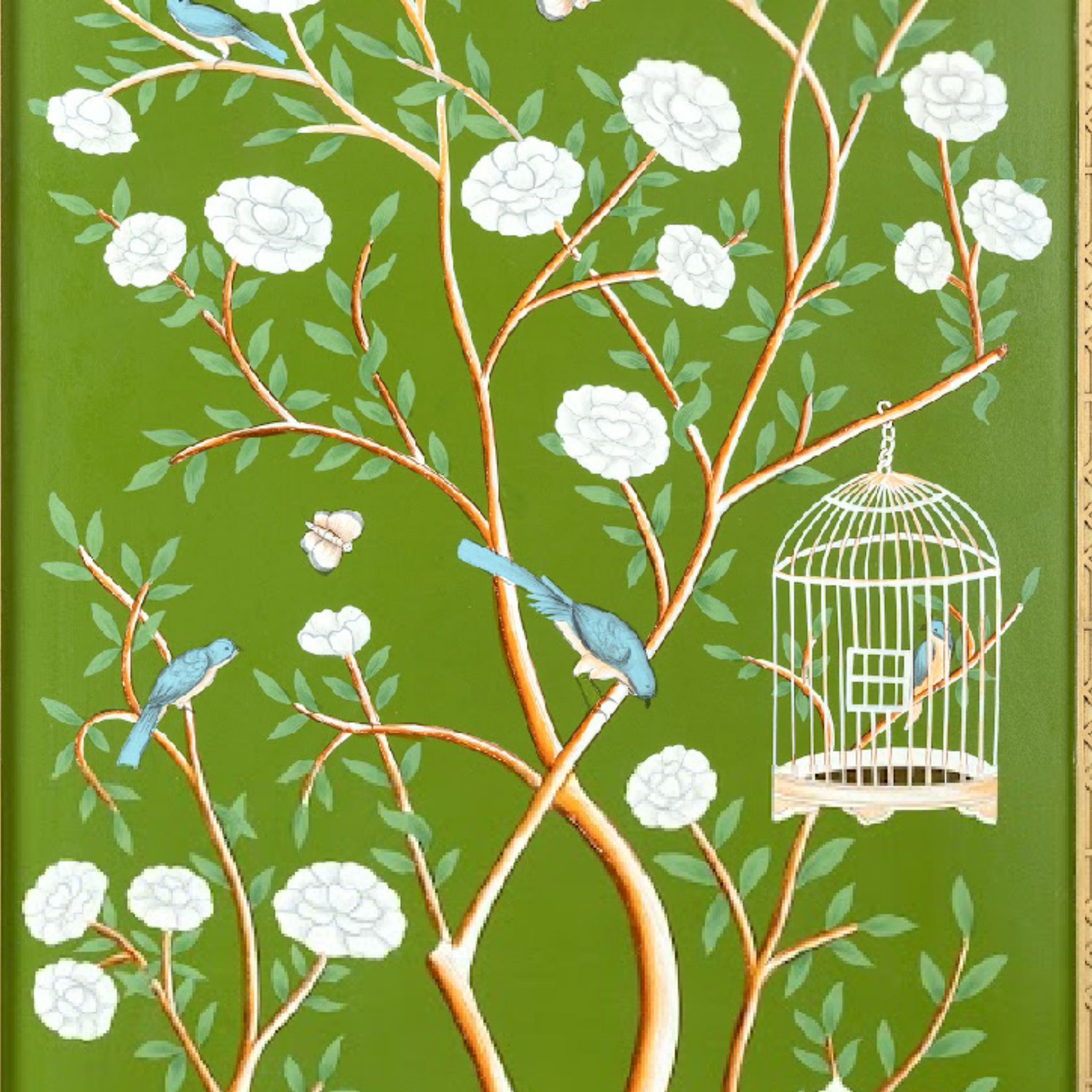 Elevate your space with the timeless elegance of chinoiserie hand-painted murals. Each mural is meticulously hand-painted by skilled artisans, capturing the intricate details and rich colors characteristic of the chinoiserie style. The design often features delicate floral patterns, serene landscapes, and intricate motifs inspired. Whether depicting graceful birds perched among lush foliage or tranquil scenes of nature, these murals are crafted to transport you to a world of beauty and refinement.