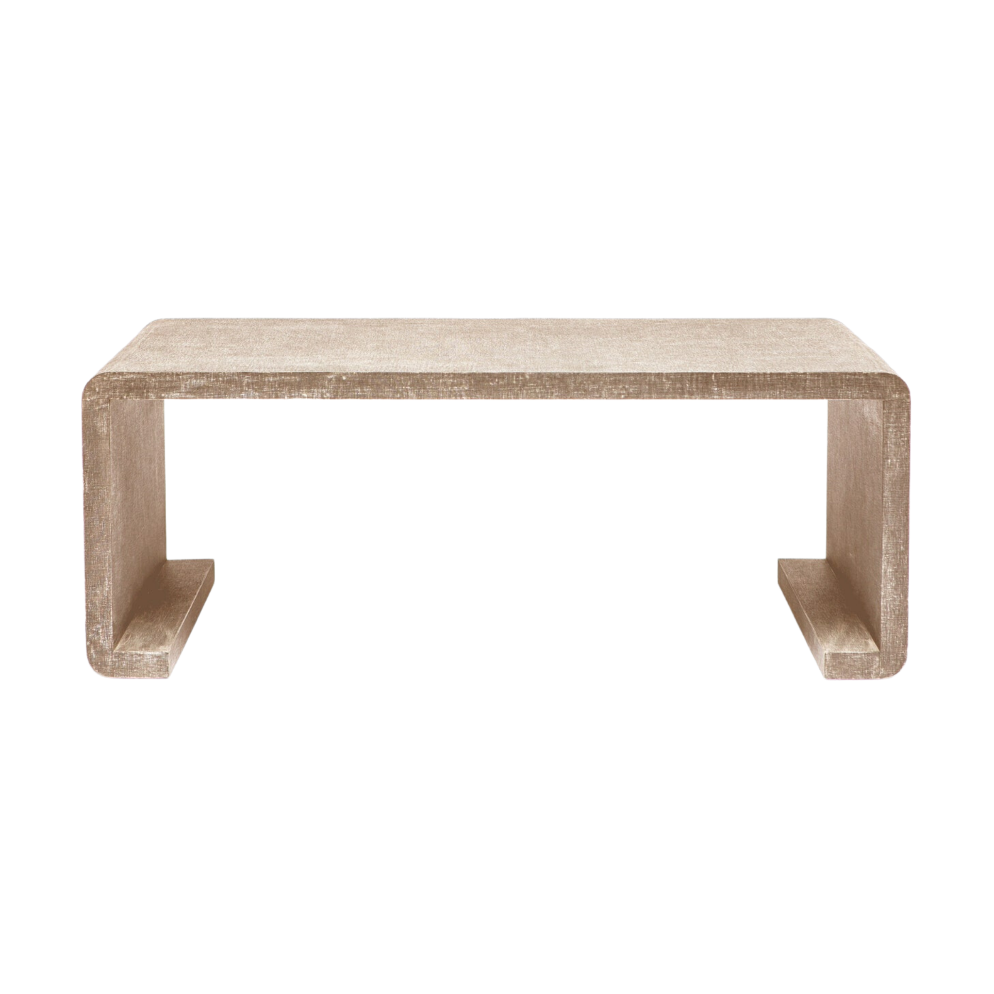 Simple drama is the best kind and the Gustav fits the bill. This waterfall-style coffee table with curved legs is finished with faux linen.