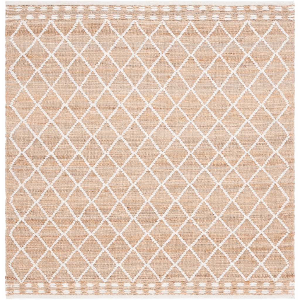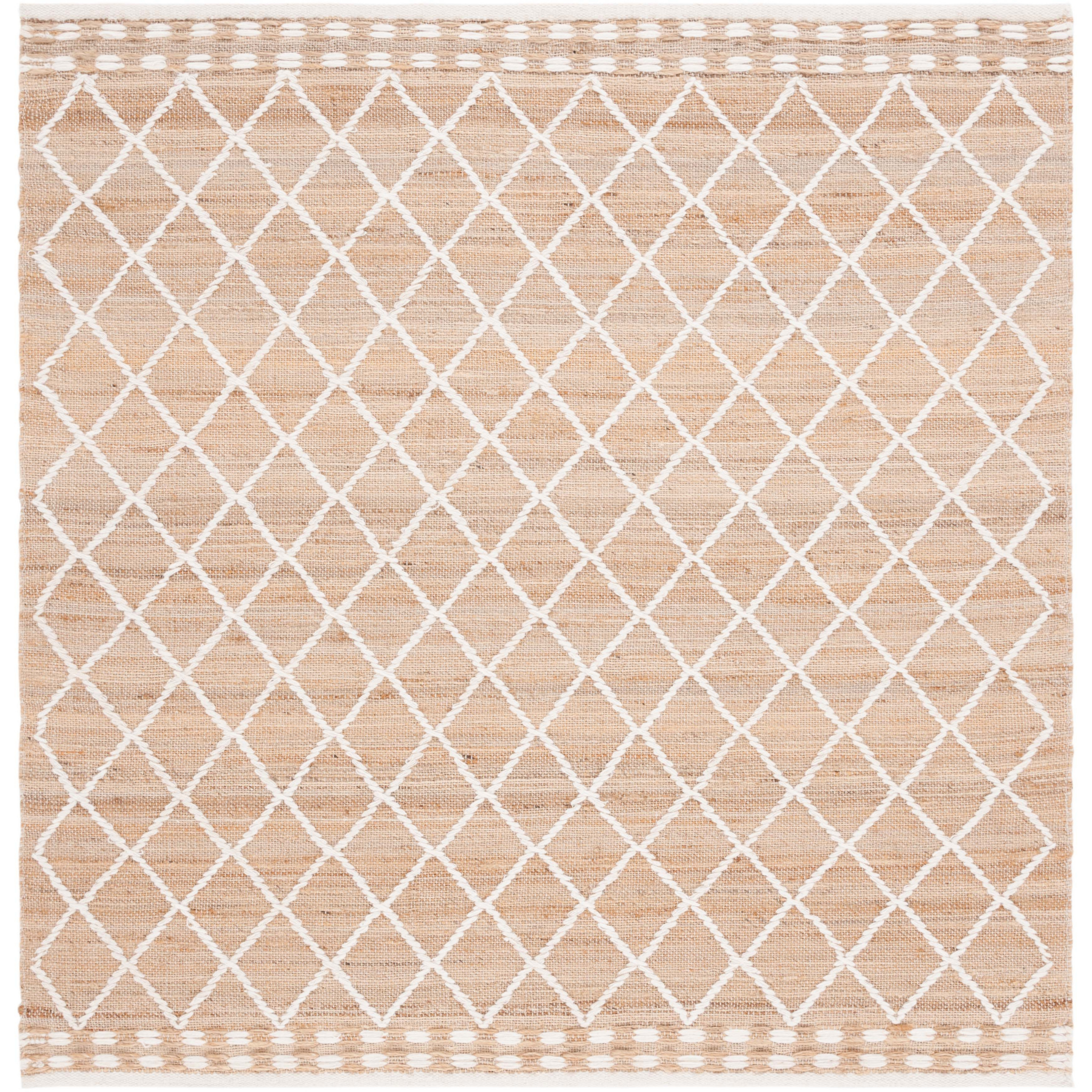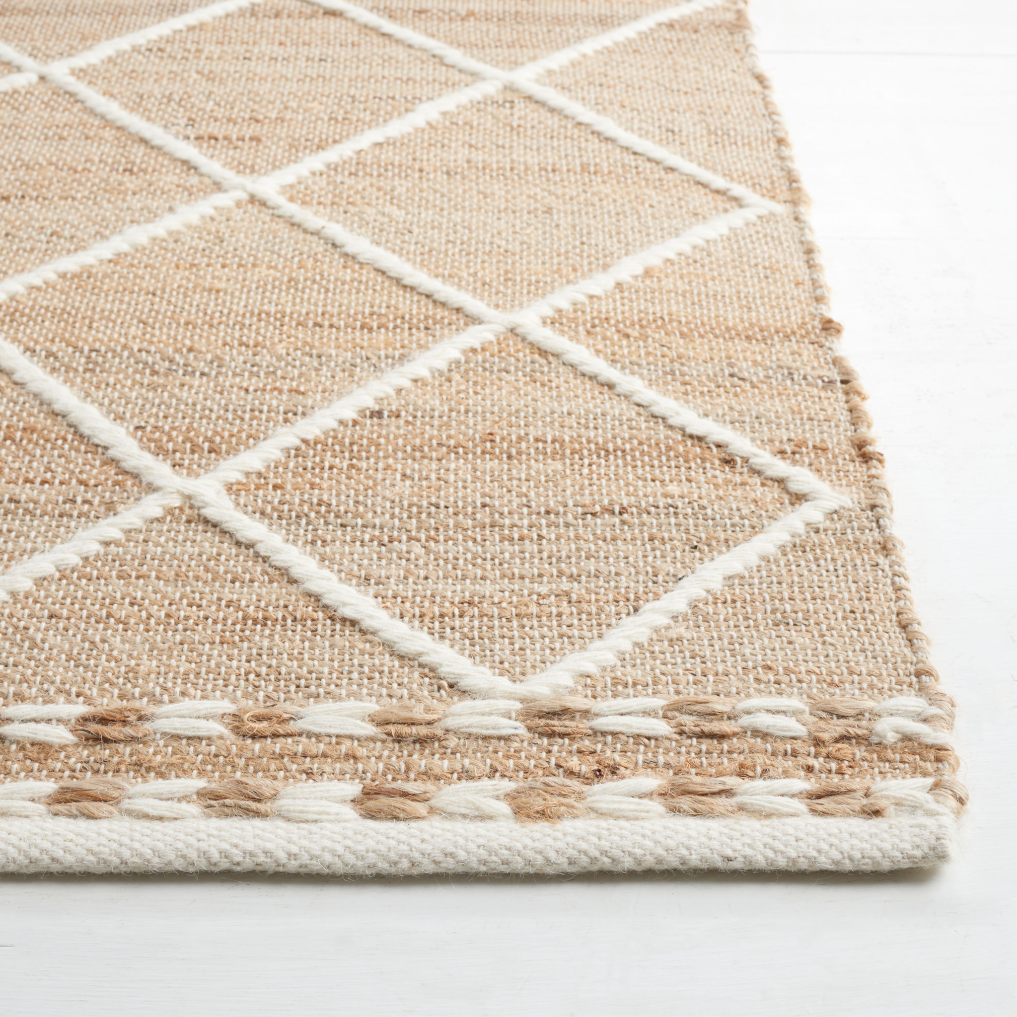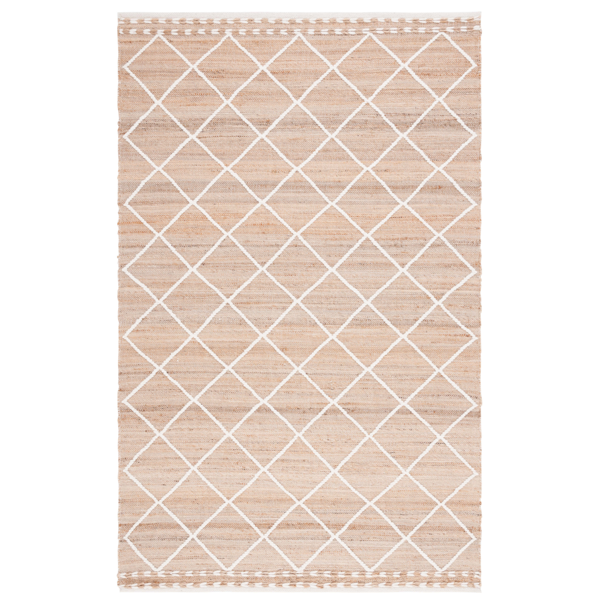 Natural Fiber Beige Diamond Pattern Hand Woven Area Rug