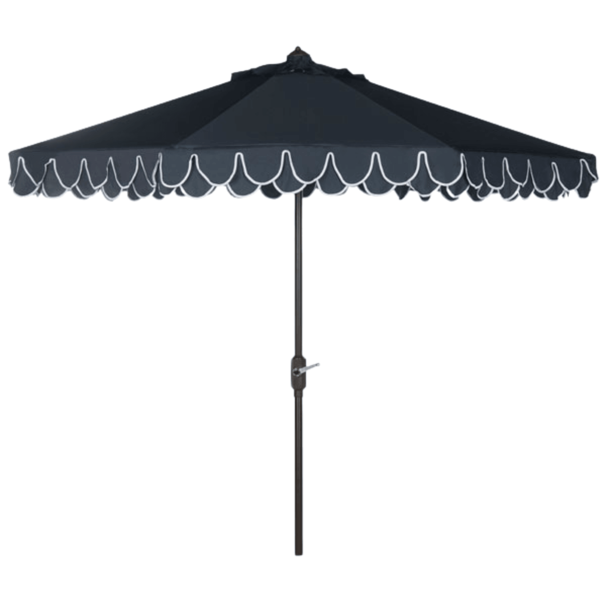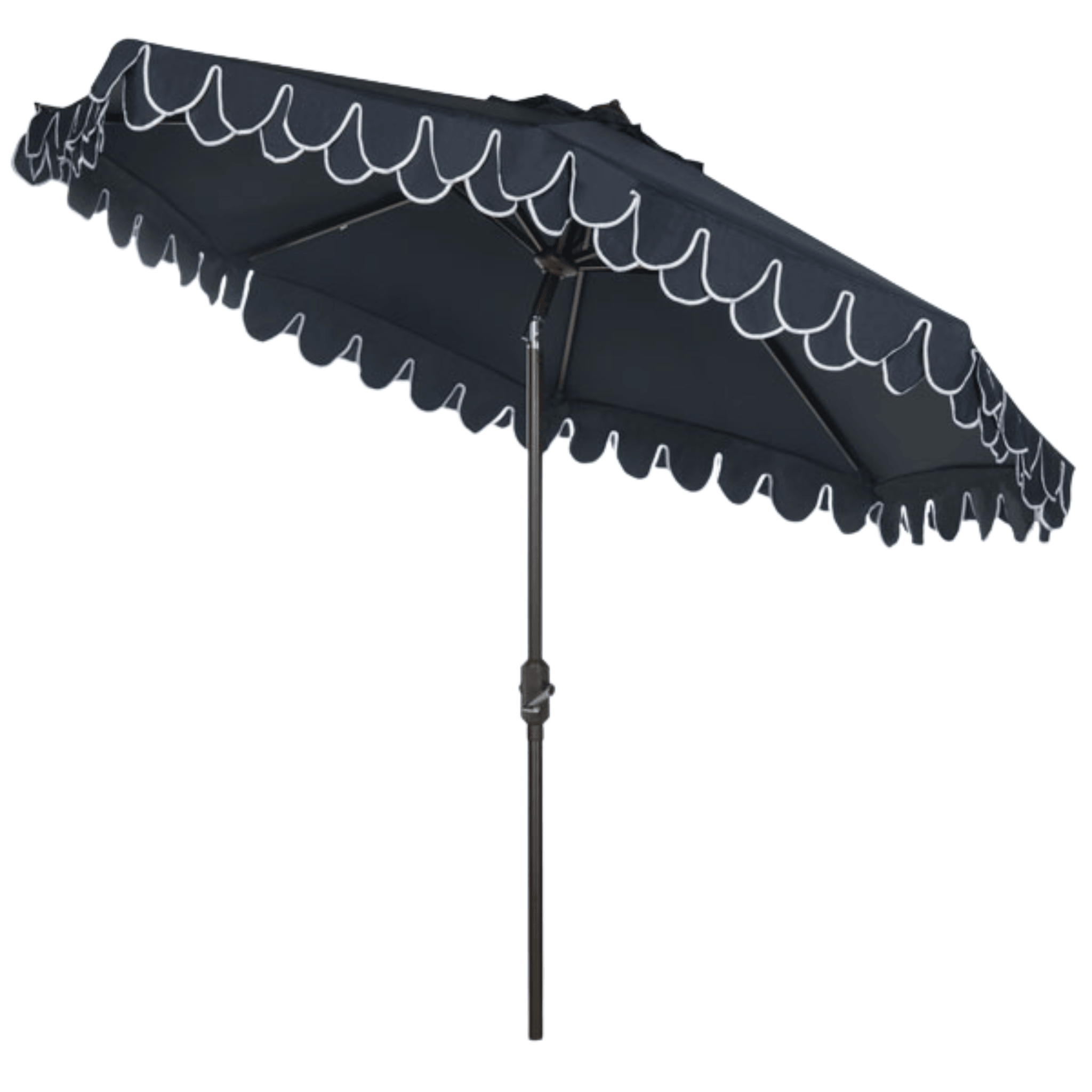 Offering a second home to jetsetters and cinema stars, a legendary beachside resort at Cannes inspired this elegant umbrella. Its petal valance finished in crisp beige and white, it recalls the inimitable red carpet glamour of the Cote d’Azure. When open, this umbrella measures 100.79"W X 100.79"D X 98.82"H and when closed it measures 6.1"W X 6.1"D X 98.82"H The pole measures 1.5" in Dia. Some assembly is required. Click images for greater details.