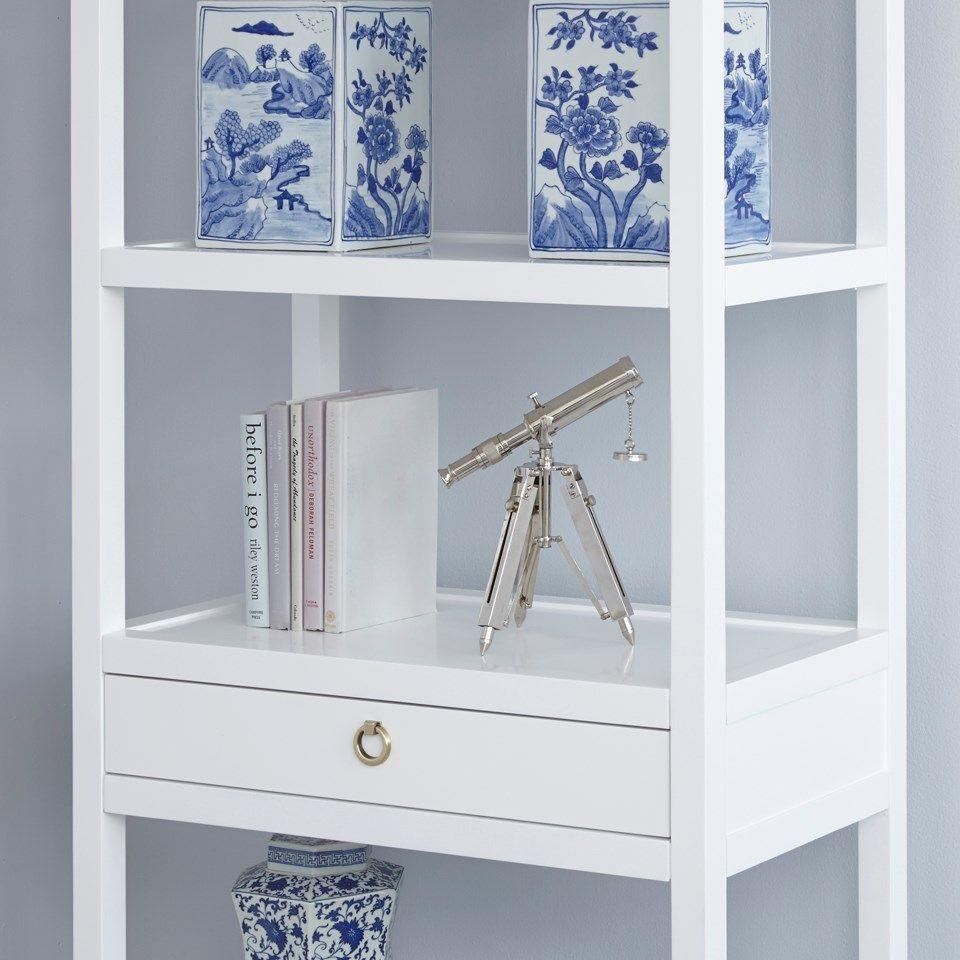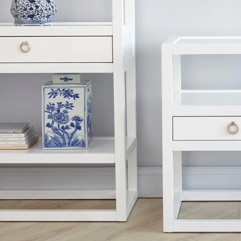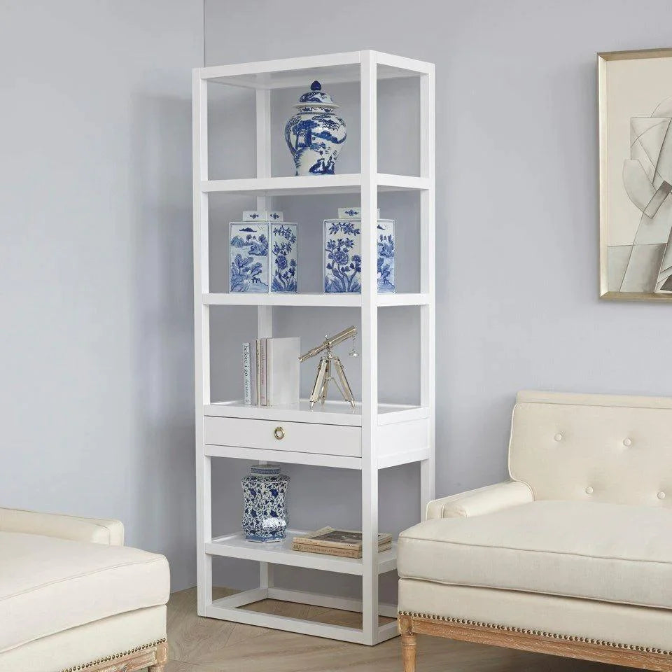 Newport Etagere in White Pearl with Brass Hardware