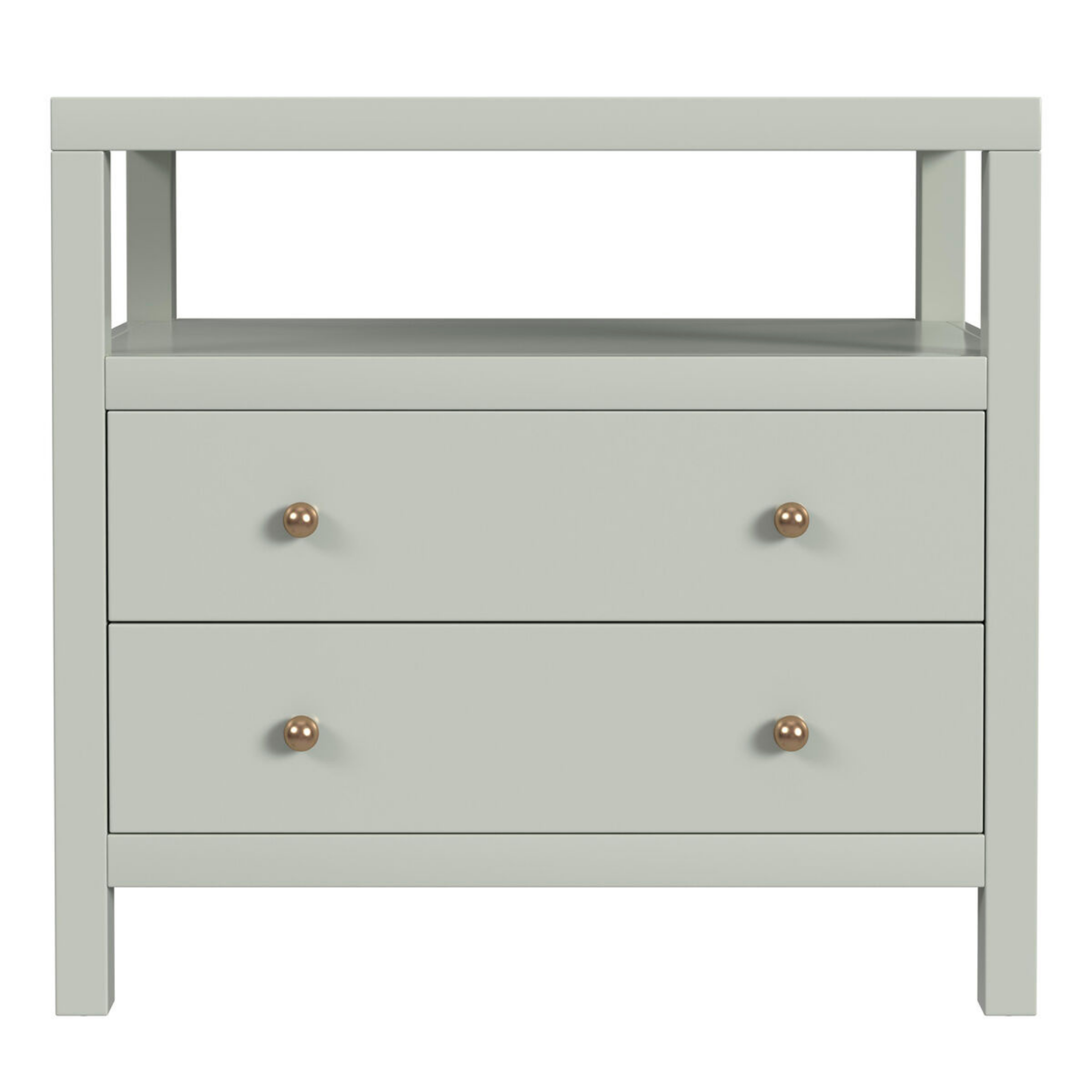 Designed with 2 lower drawers and an open shelf above, it offers thoughtful features for easy access and storage and comes in multiple finish options that lends a gorgeous visual texture and sophisticated look.