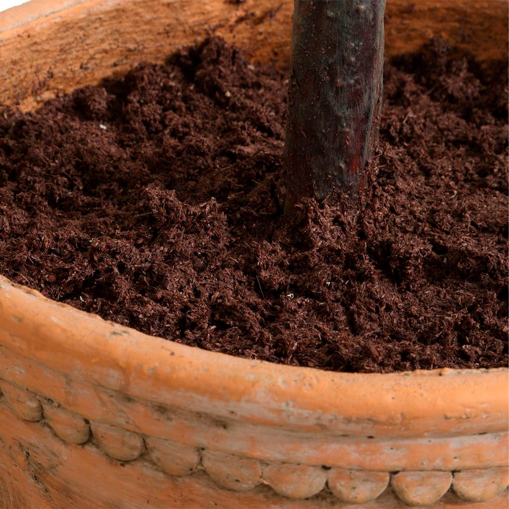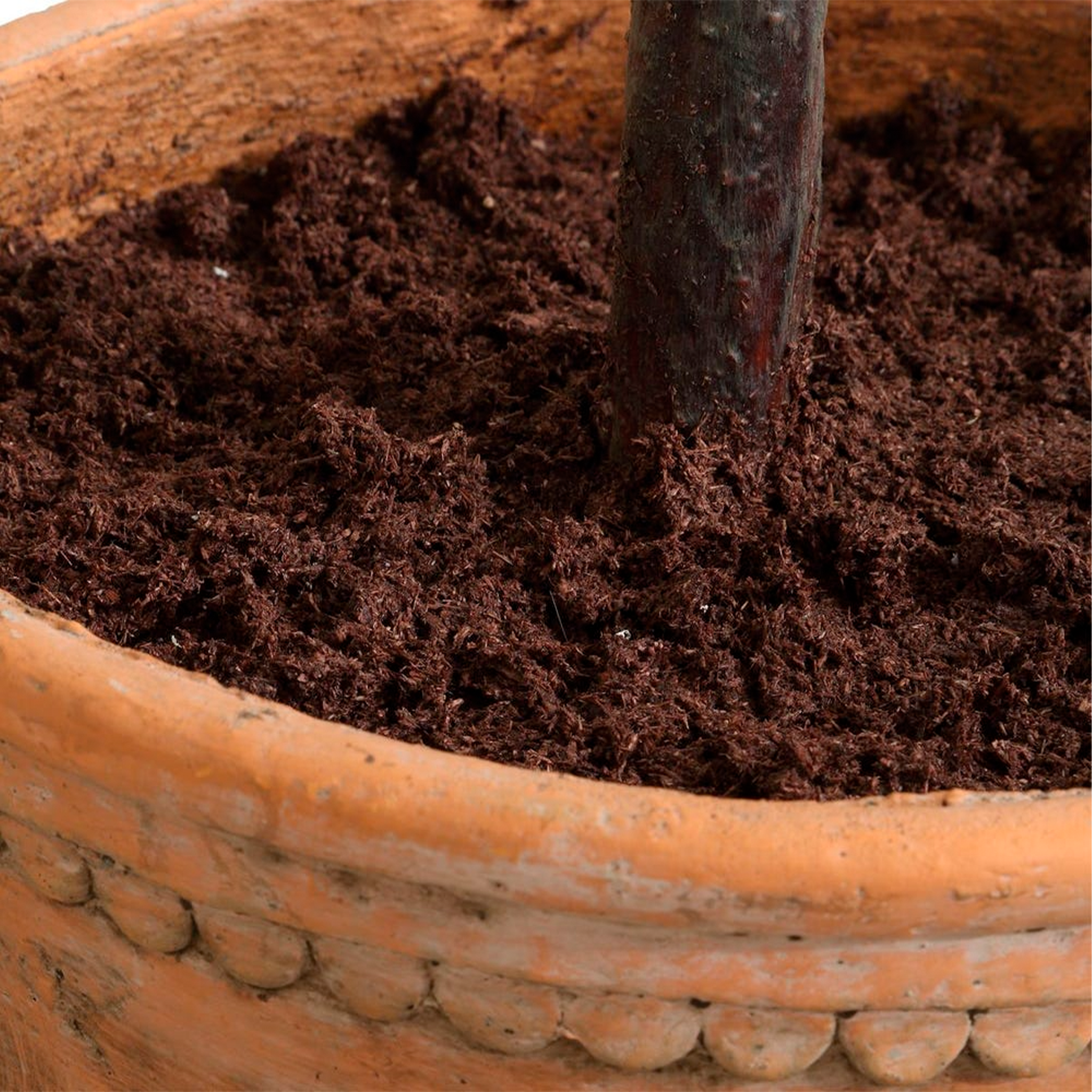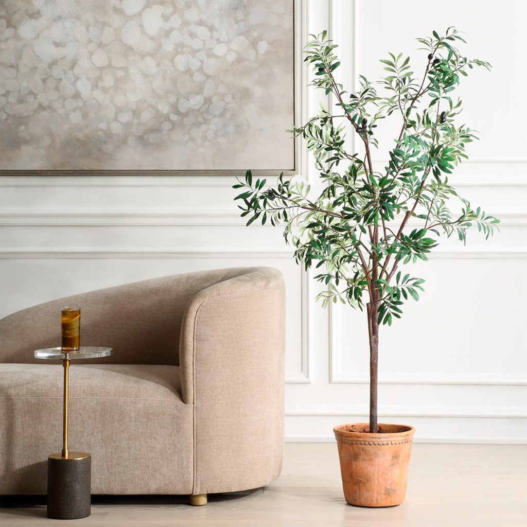 Airy, life-like sprays of olive foliage with realistic fruit clusters bring natural elegance indoors. This tall arrangement is potted in a scallop-detailed concrete container with a terracotta finish, adding texture and charm to any space.