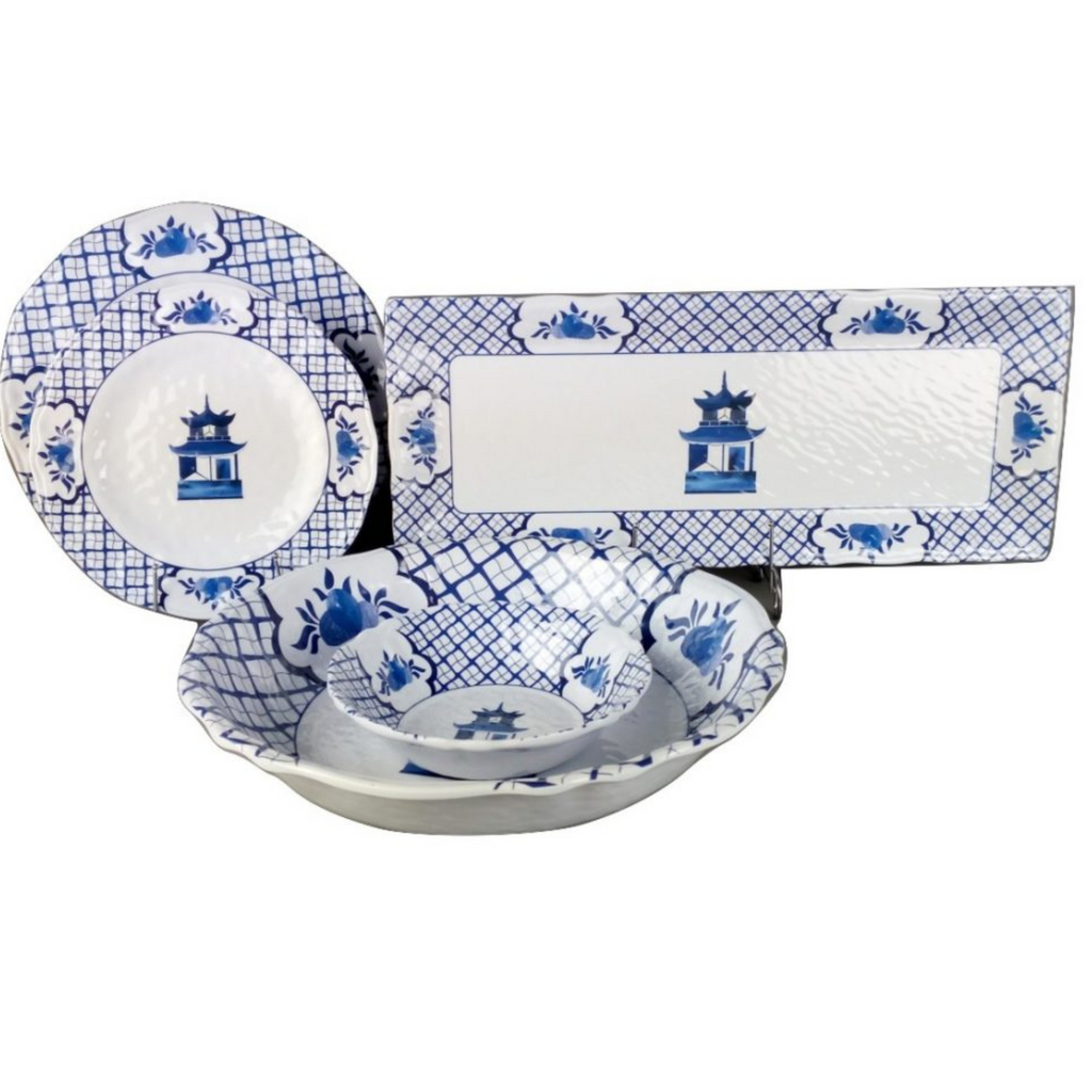 - Serving Platter (Sold Individually): Perfect for presenting main dishes or sharing platters, elegantly adorned with the pagoda pattern.