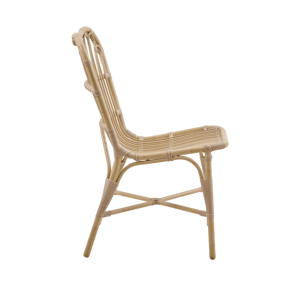 The Exterior collection is made from our signature AluRattan™ which consists of a strong aluminum frame woven with ArtFibre™, allowing some of our most popular pieces to be used outdoors and to withstand all weather conditions. This Side Chair's subtle curves add visual interest and extra comfort, while the AluRattan™ frame provides lasting strength and durability.