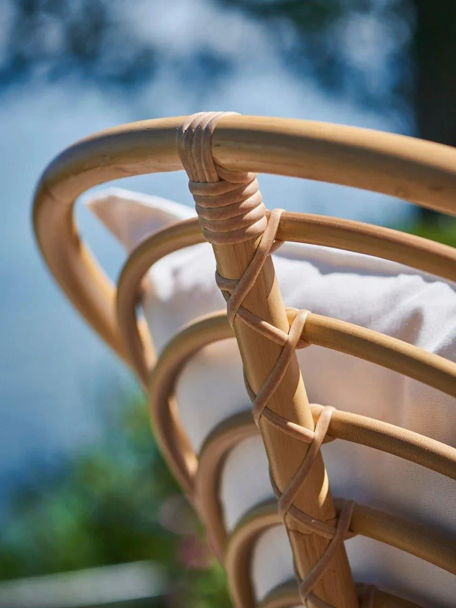 The Exterior collection is made from our signature AluRattan™ which consists of a strong aluminum frame woven with ArtFibre™, allowing some of our most popular pieces to be used outdoors and to withstand all weather conditions. Arne Jacobsen designed the original Charlottenborg Chair in 1936. The distinctive parallel curves in this piece are a signature element of Jacobsen's designs. The Charlottenborg Chair blends strength and fluidity for a noteworthy addition to any outdoor space. Measures 29.1" x 28.7" x 30.3". Click image for greater detail.