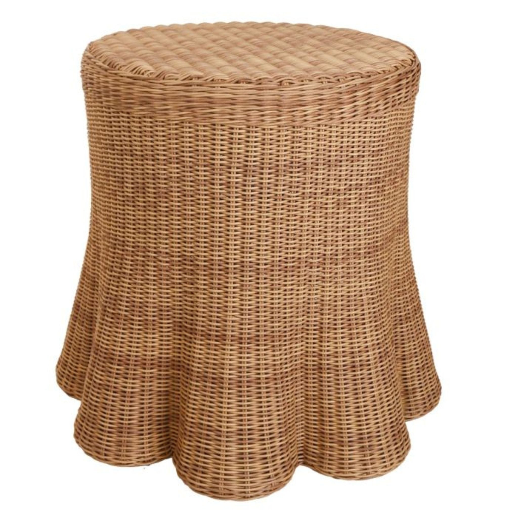 Add breezy sophistication to your patio or poolside with the Outdoor Scallop Side Table, featuring a handcrafted scalloped edge and durable all-weather construction. This elegant accent table combines artisanal details with practical function, perfect for holding drinks, books, or potted plants.