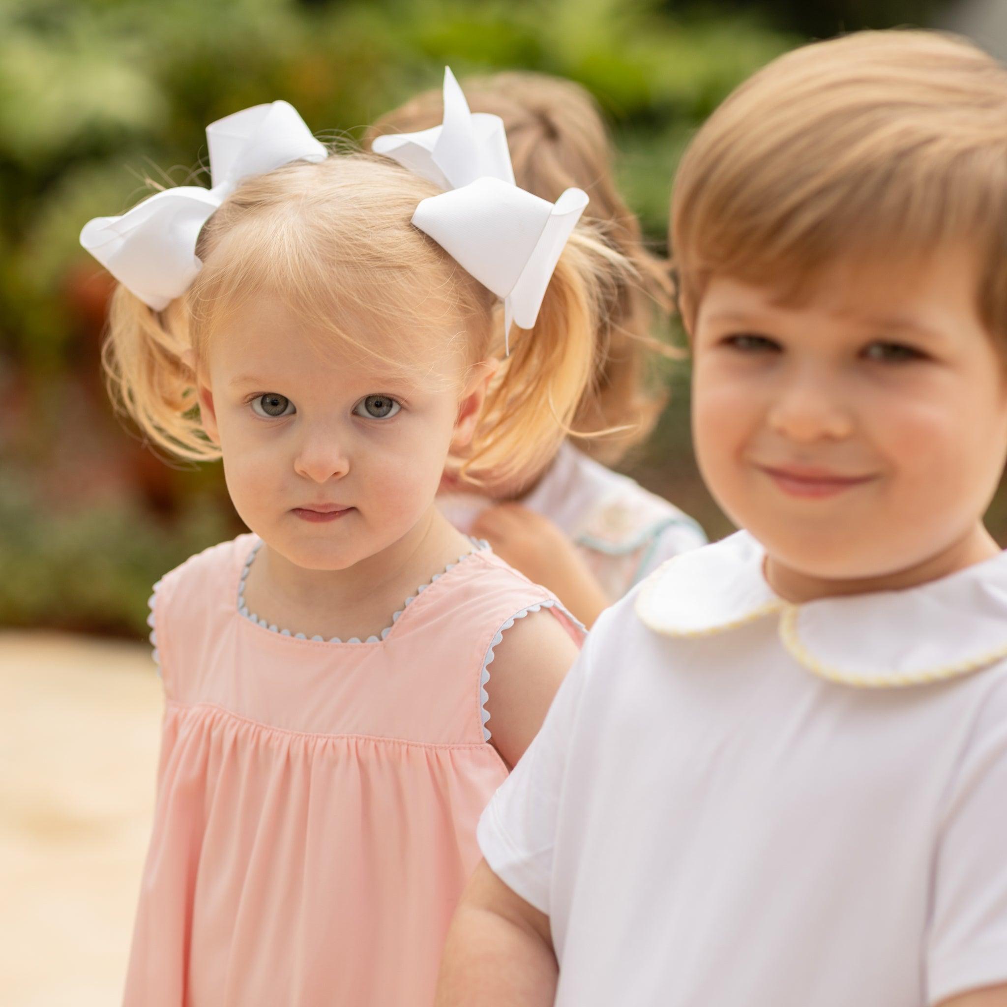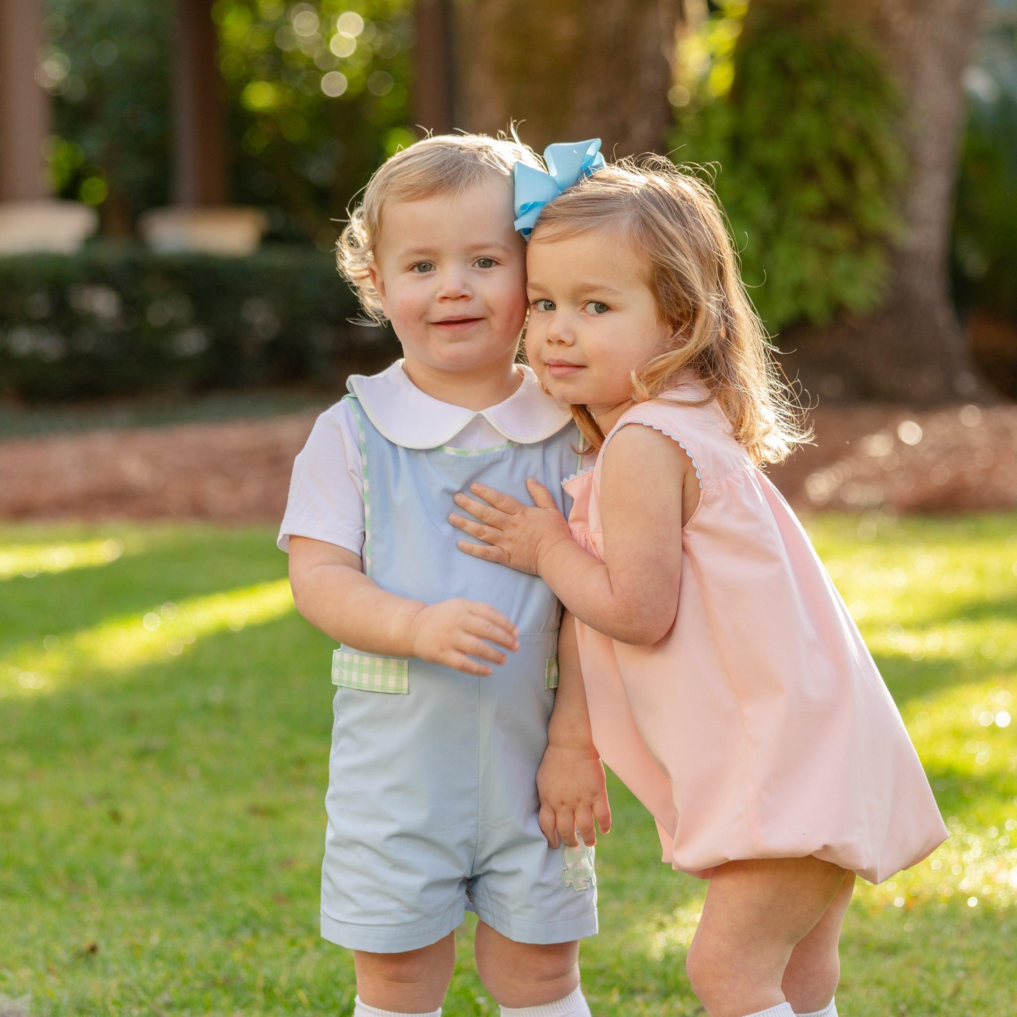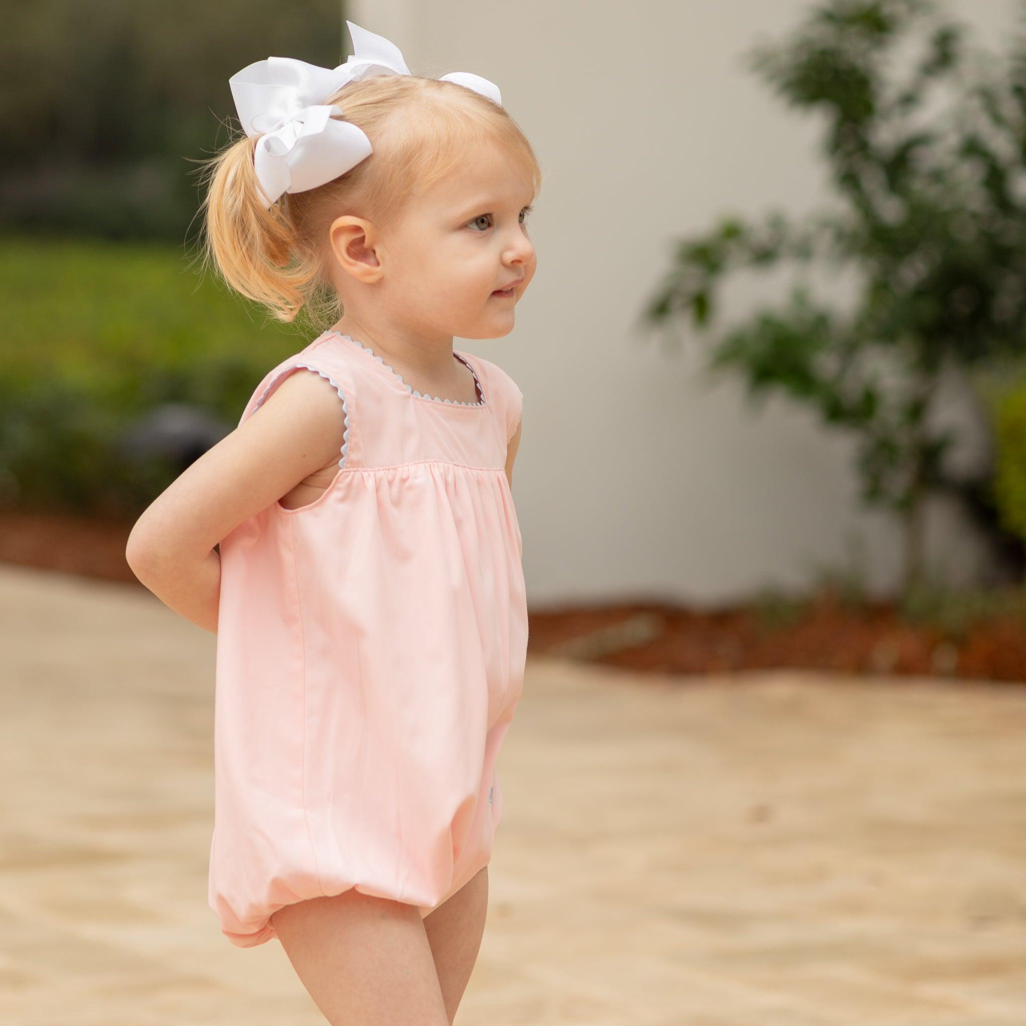 Our Palmer Bubble is as sweet as she is. In the softest shade of pink, it features our gingham bunny to coordinate with our entire Easter line for easy sibling coordination. Made of soft, non-wrinkle bamboo blend, it's easy to wear and easy to wash.
