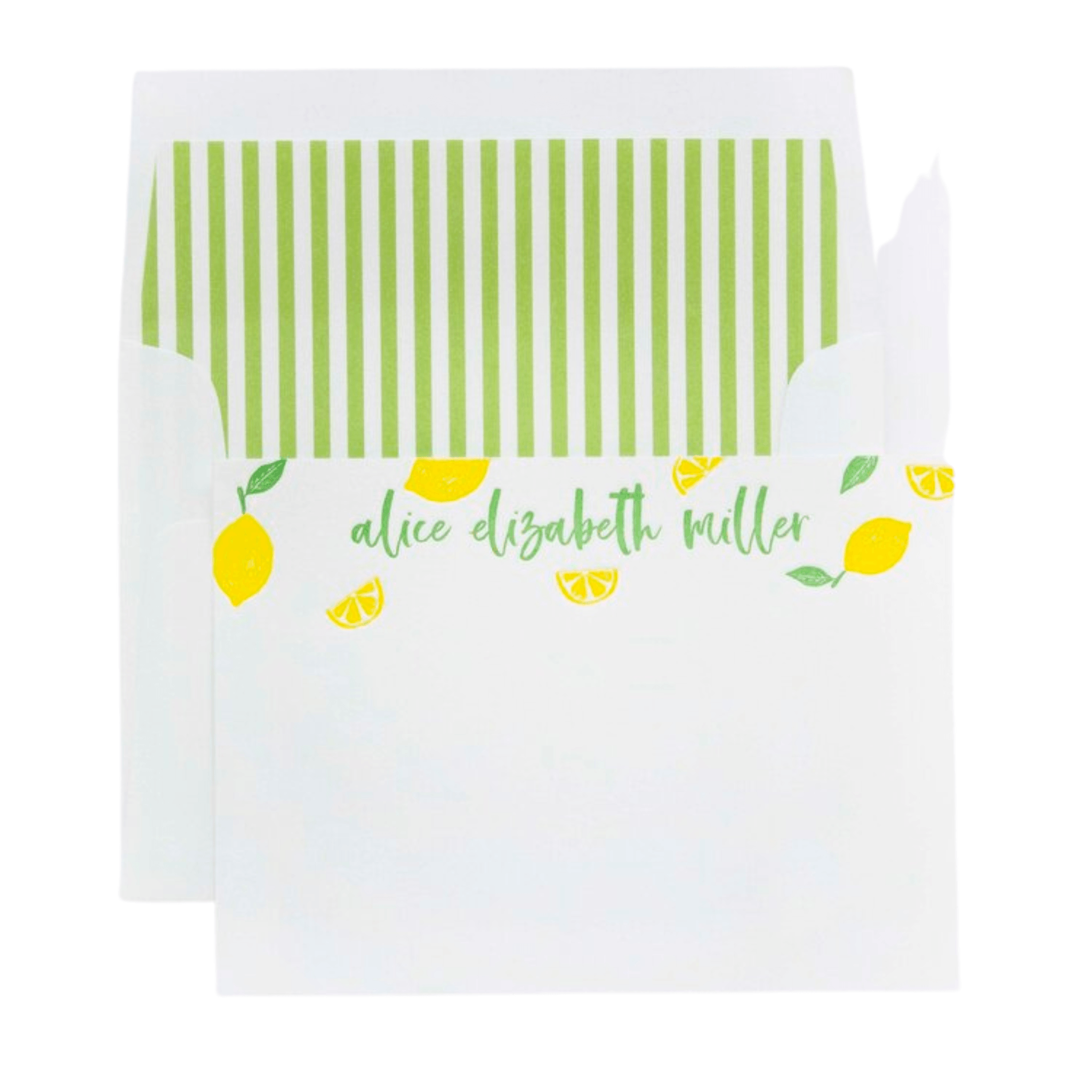 All stationery in our Personal Stationery collection is printed on 4.5" x 6.25" Crane's 110# Lettra in a Two Color Letterpress method.
