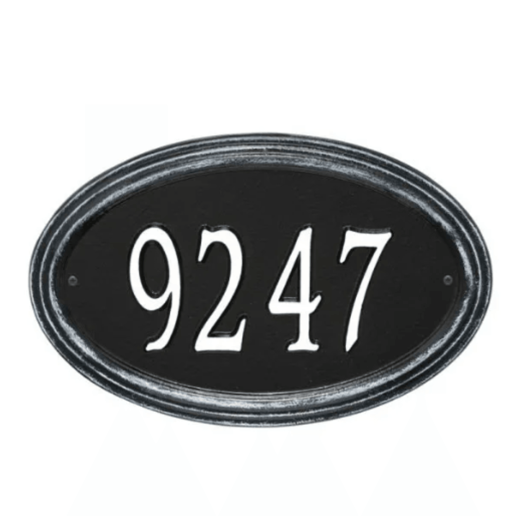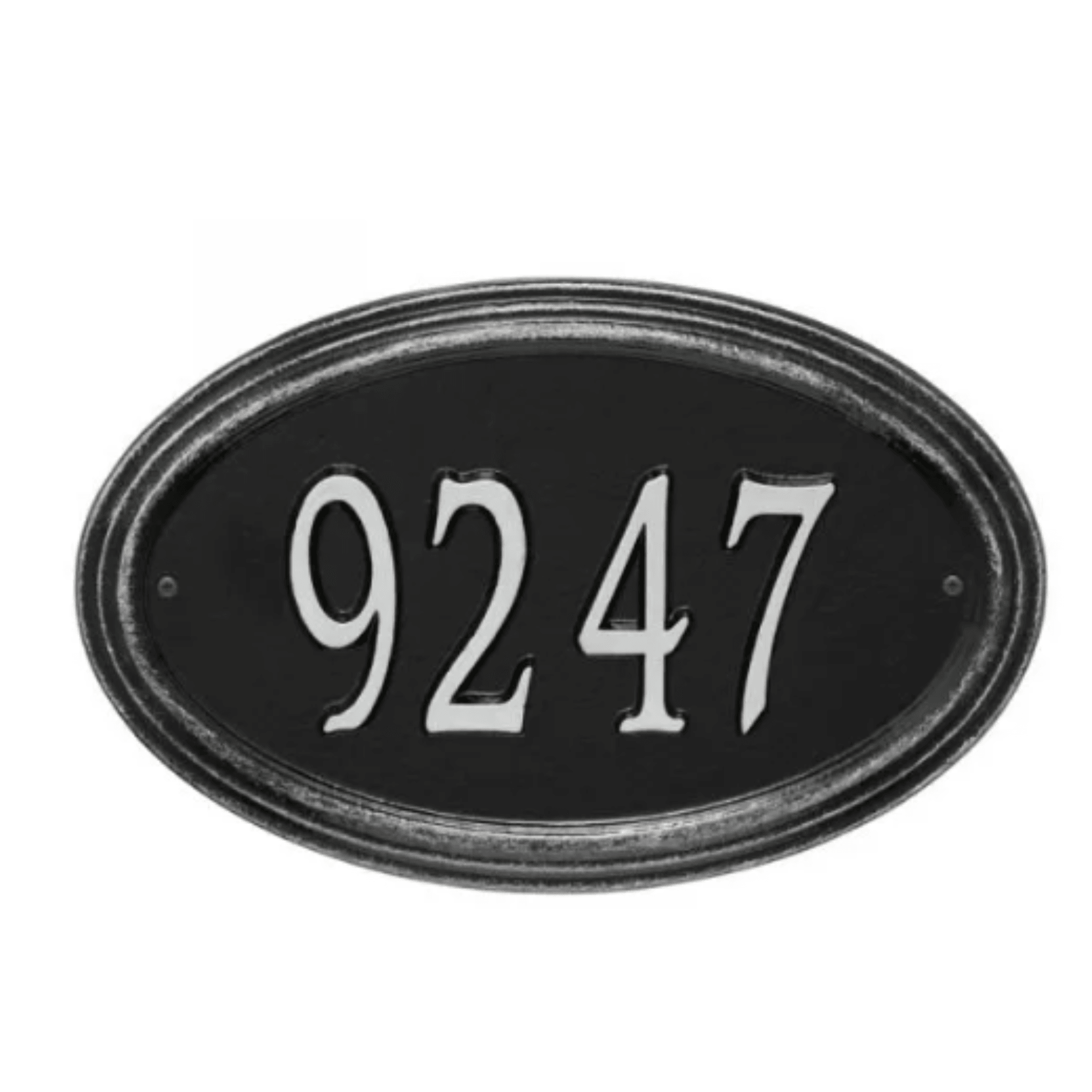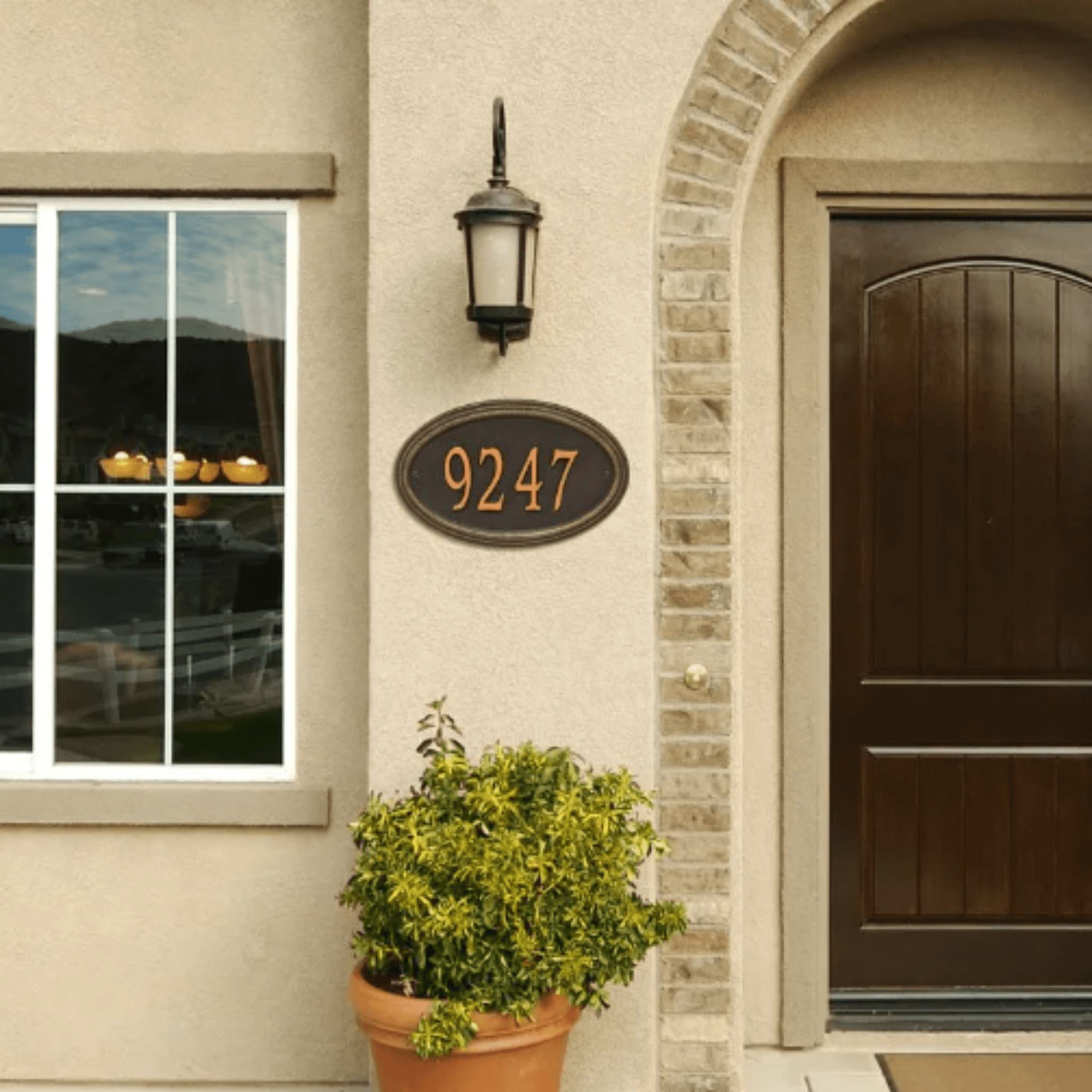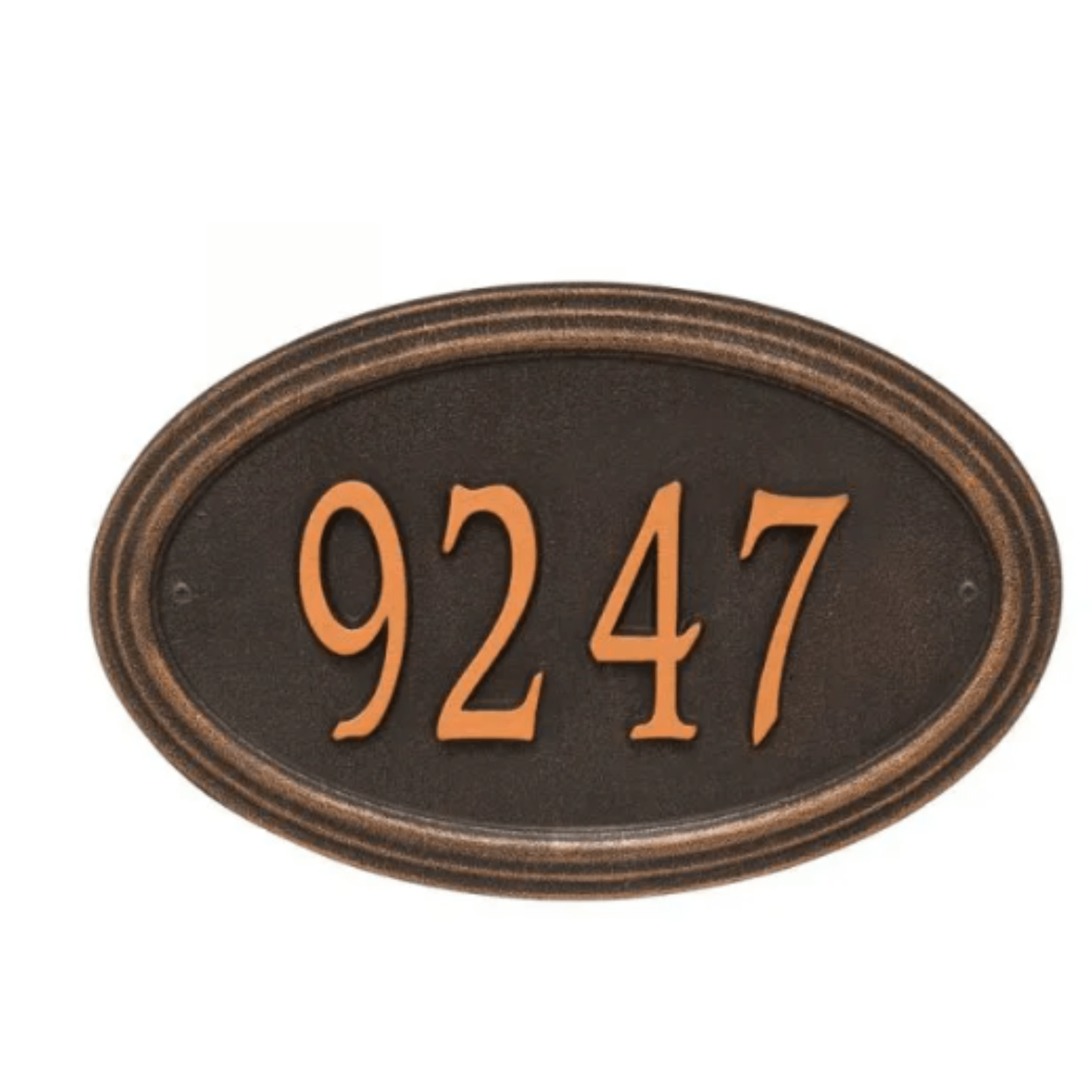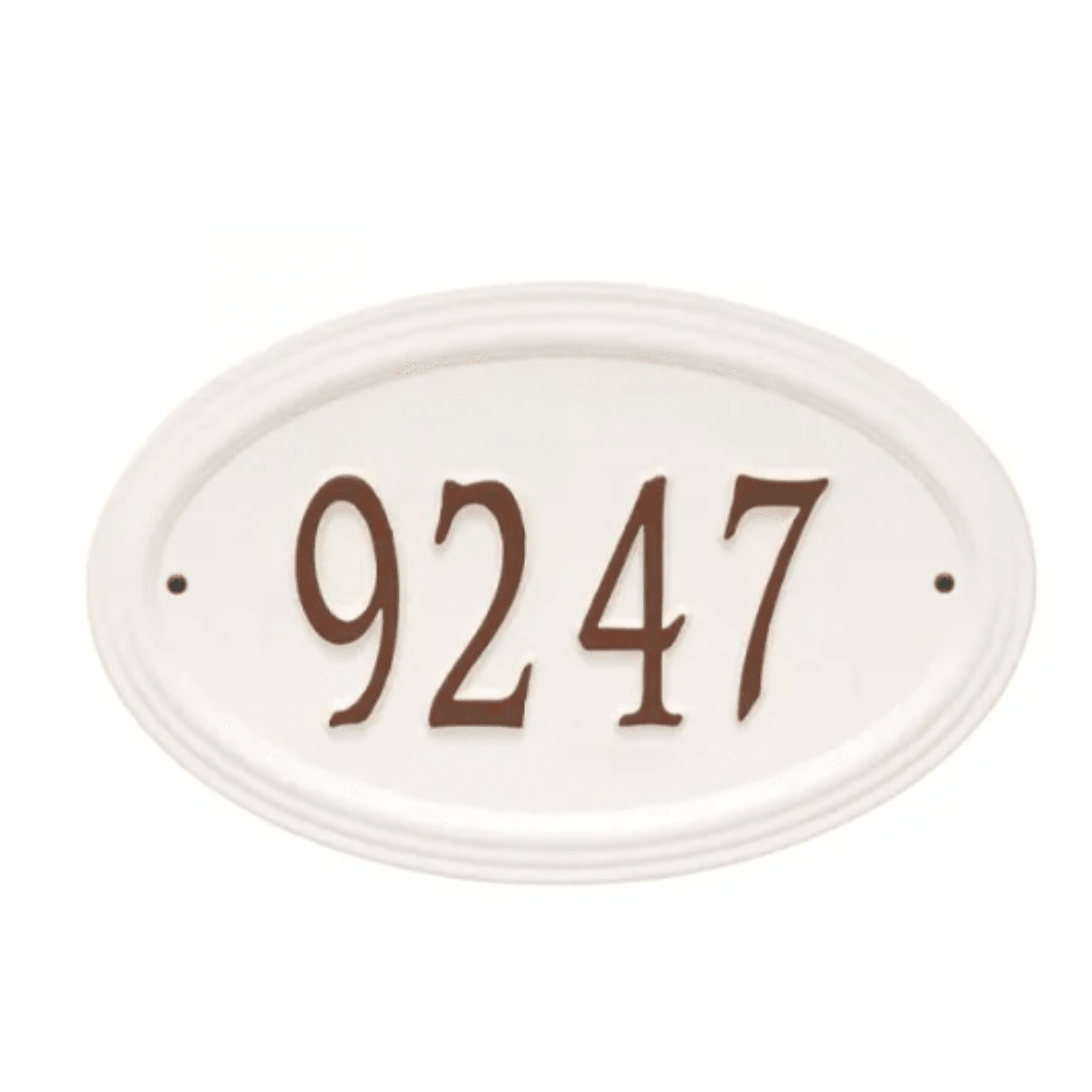 The Concord Oval personalized plaque will add instant curb appeal. The raised border and classic lines of the Concord Oval are timeless. Proudly hand crafted in the USA. This plaque measures: 15" x 9.5" x 1.25". Holds up to 4 - 4" characters. Please note this item is custom made to order and may not be returned. Please review our return policy on custom made to order items for more details. Click images for greater detail.