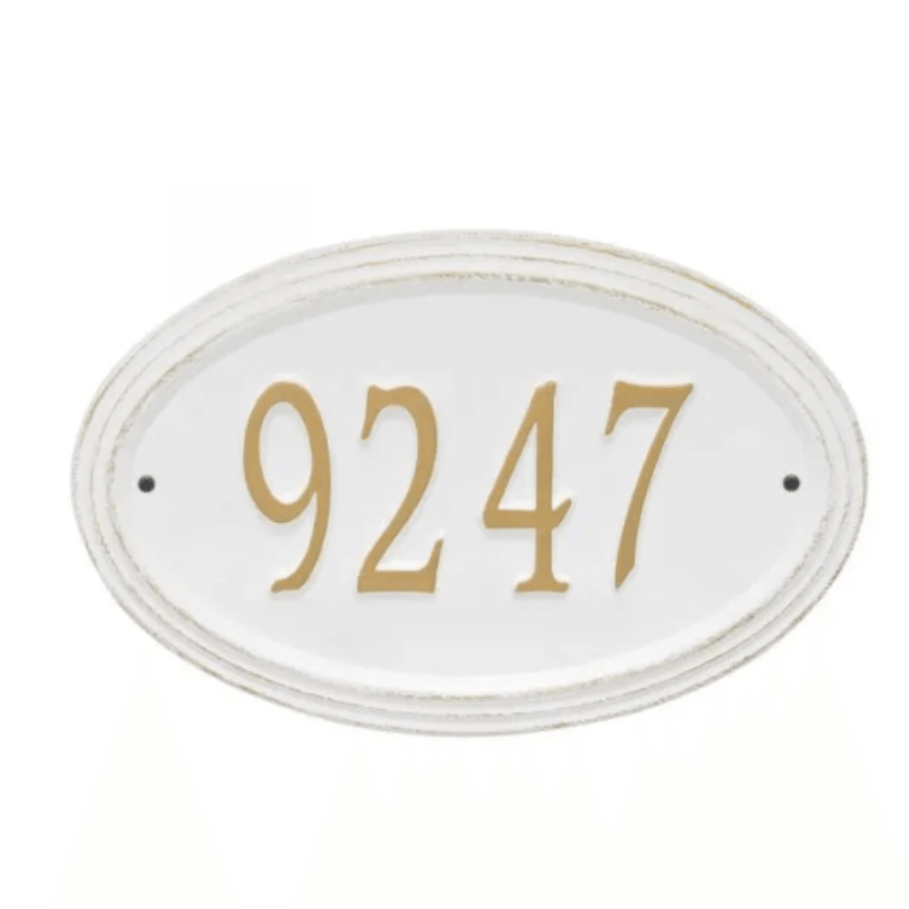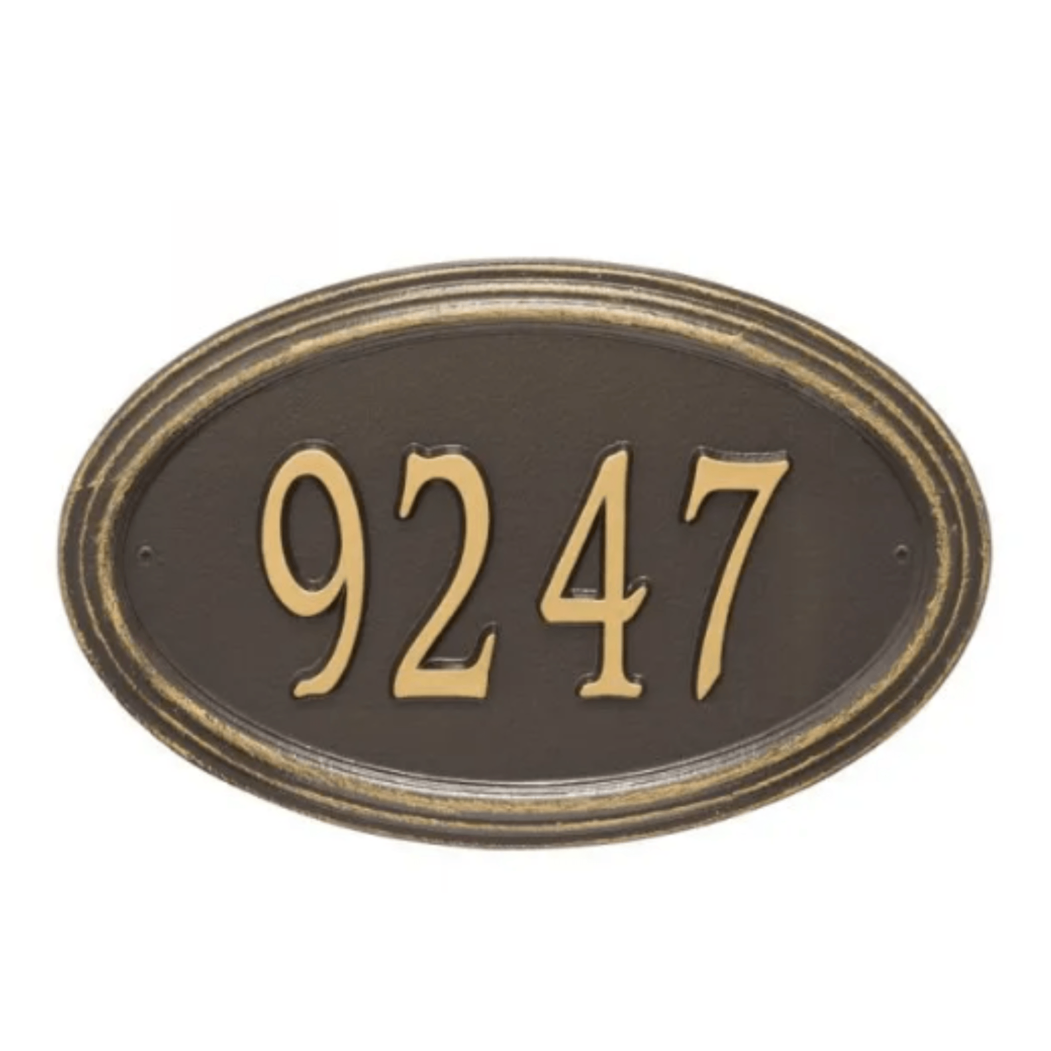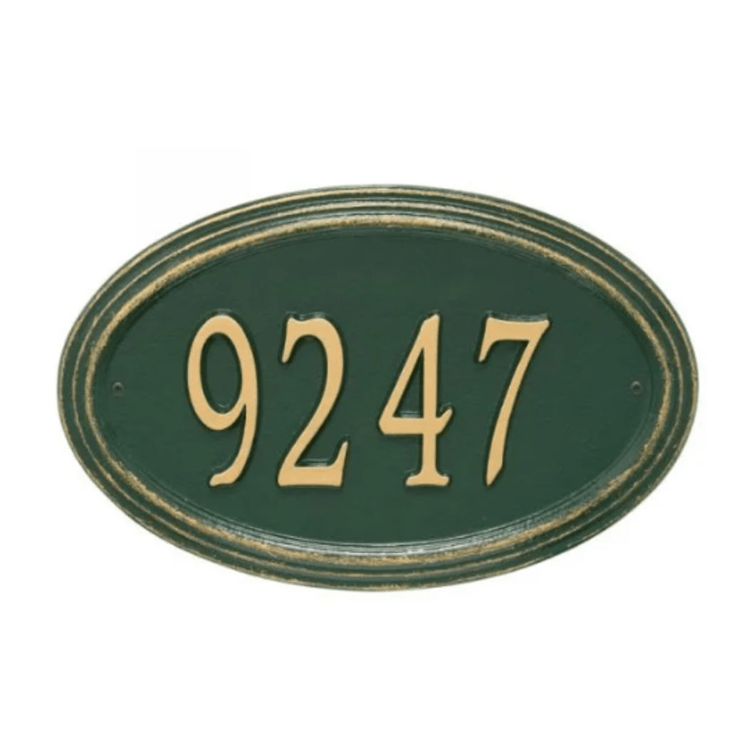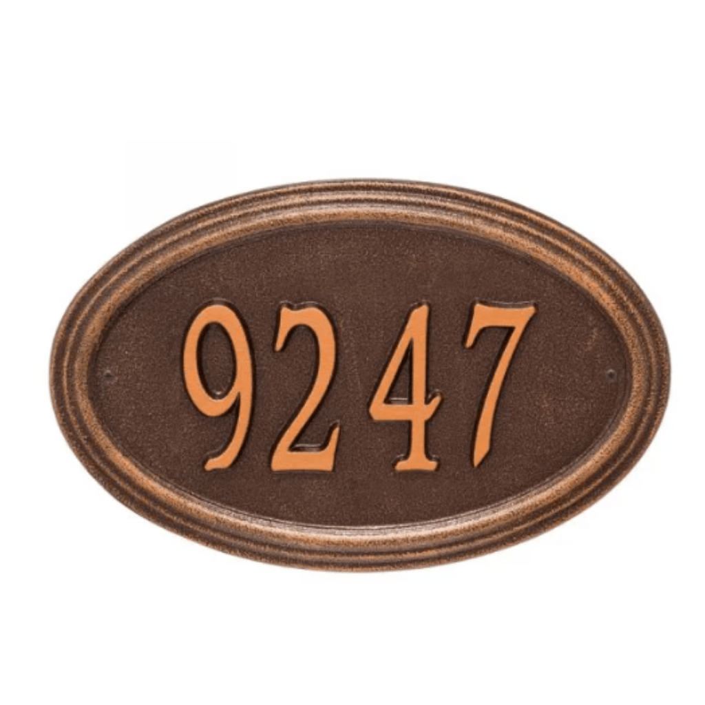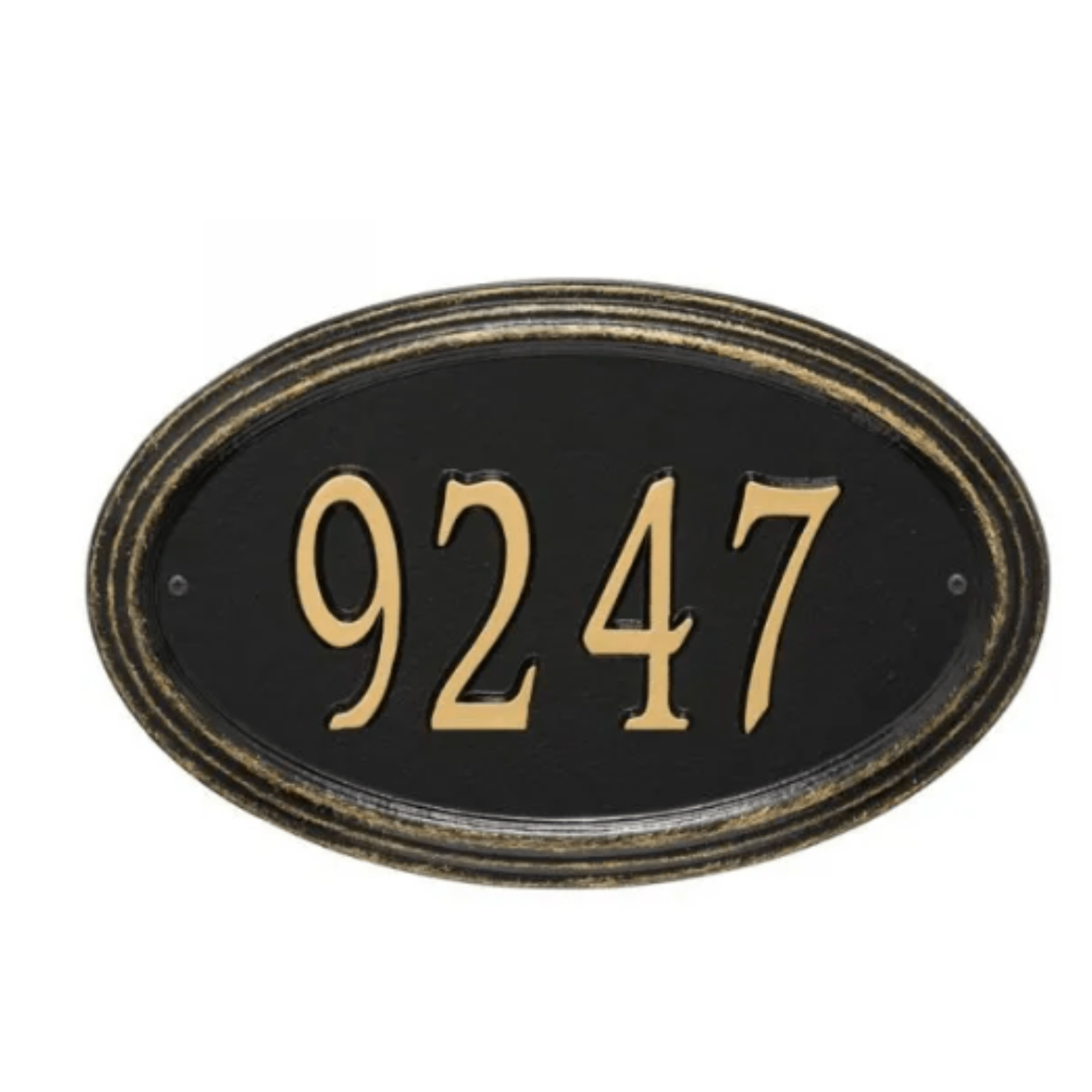 The Concord Oval personalized plaque will add instant curb appeal. The raised border and classic lines of the Concord Oval are timeless. Proudly hand crafted in the USA. This plaque measures: 15" x 9.5" x 1.25". Holds up to 4 - 4" characters. Please note this item is custom made to order and may not be returned. Please review our return policy on custom made to order items for more details. Click images for greater detail.