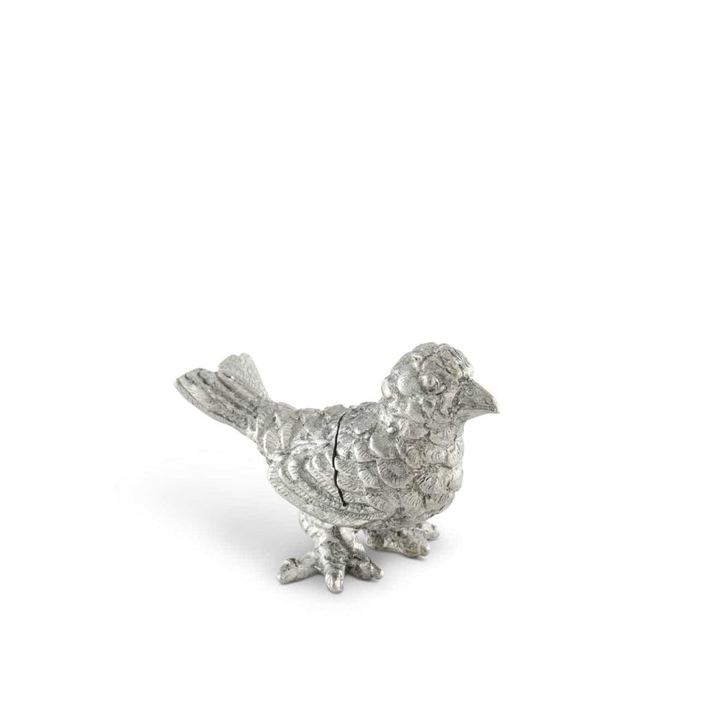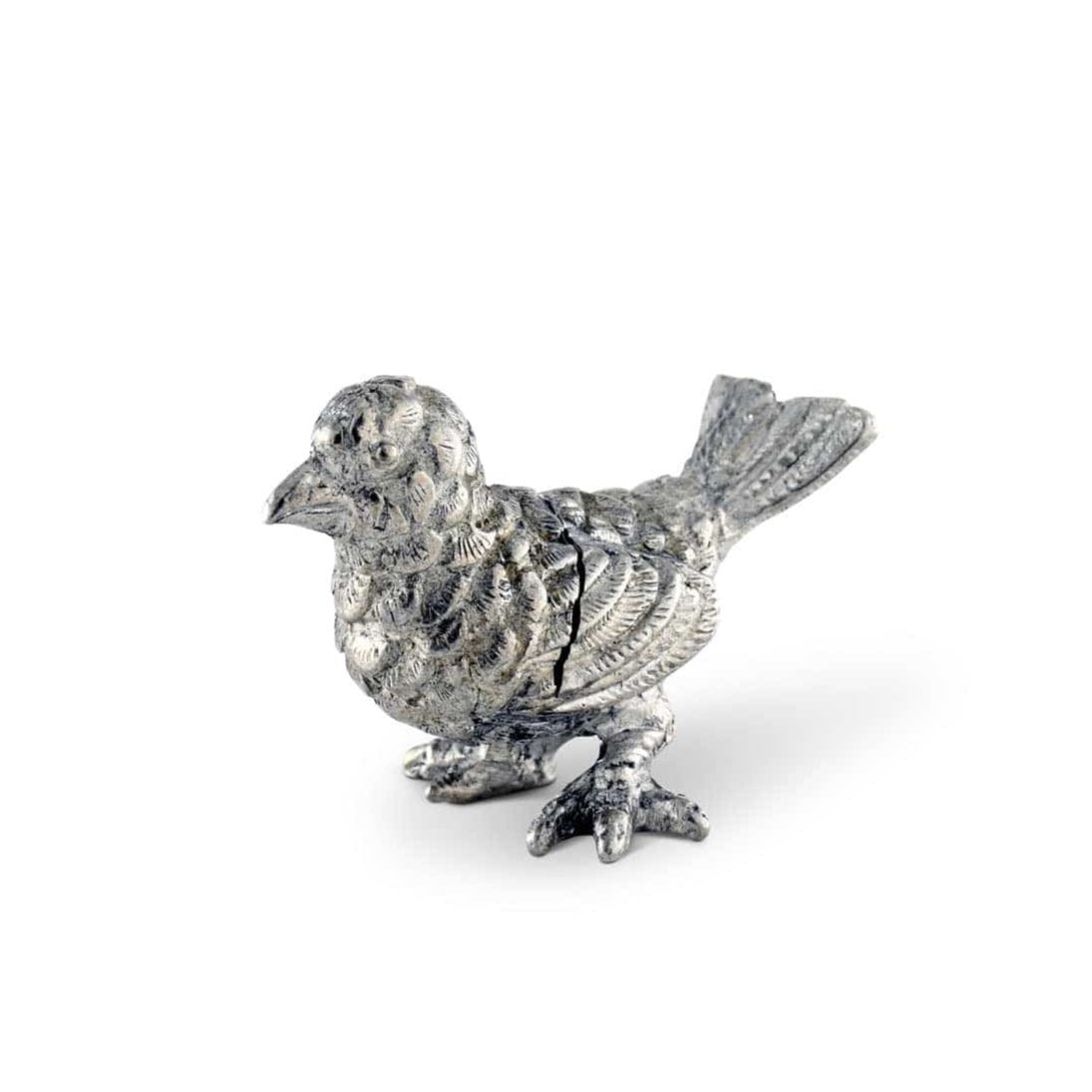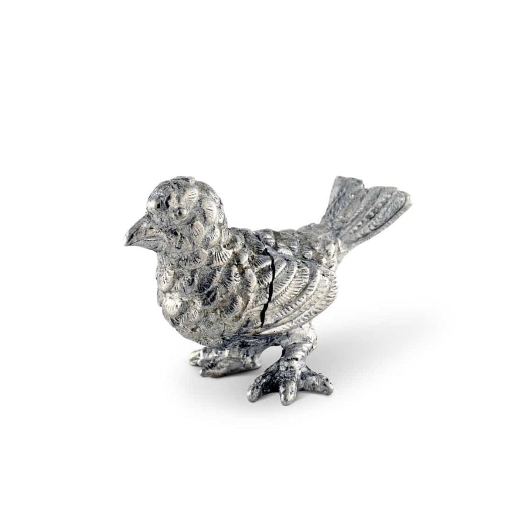 Intricately detailed, our Songbird Place Card Holders are remarkably unique accents for your formal table. These charmers are perfect for any flora and fauna themed occasion, adding a touch of natural charm to elegant tables. Crafted with care from pure Vagabond House pewter, our designers have captured every feather on these lovely little birds. Inspired by mated chick-a-dees, the protective male perches on a branch and the seated female might be warming her nest.
