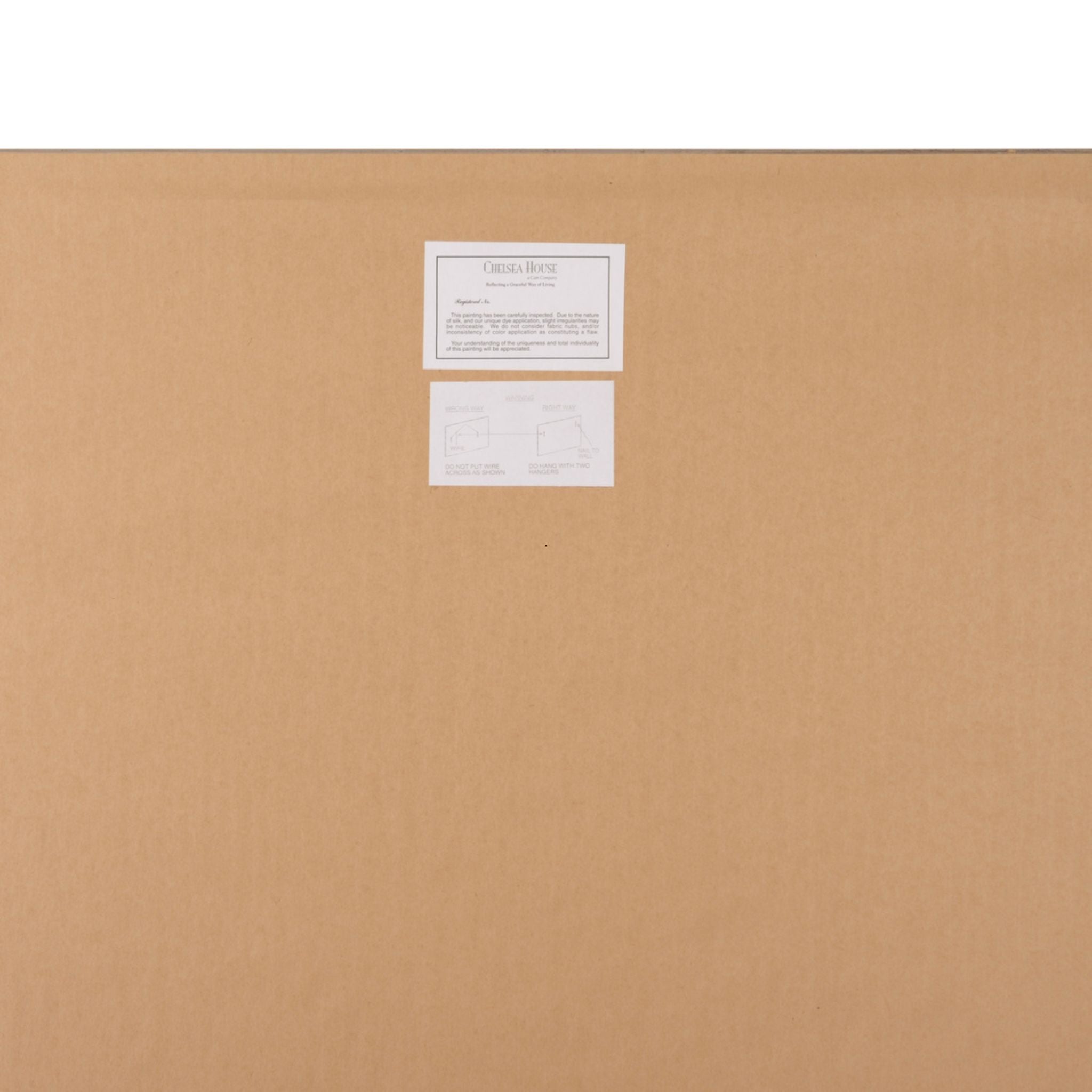 Hang this hand painted wall art in your dining room or bedroom for instant style. Features a watercolor on silk finish with a gold frame.