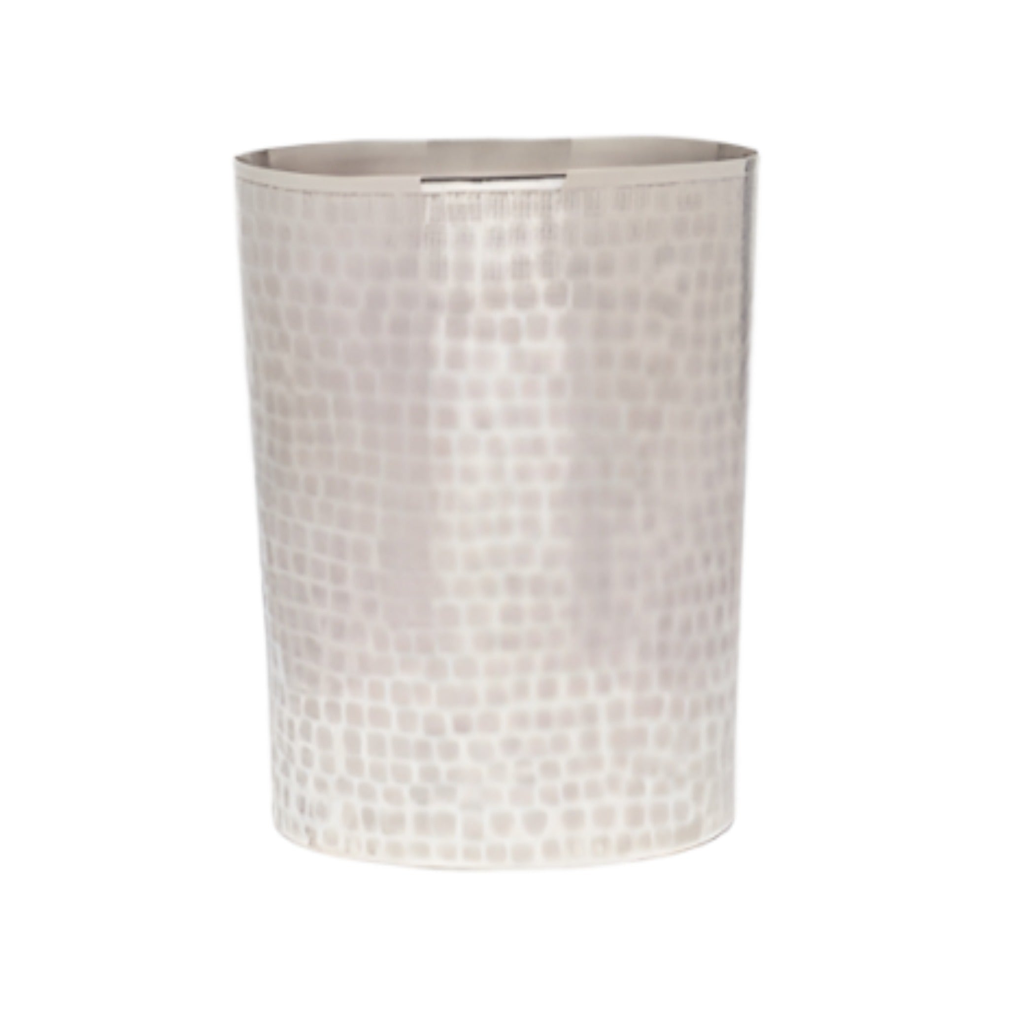 Shine on with this Buren wastebasket. Textural elements are the stars of this set. An underlying crisscross pattern is covered with a soft overlay of circles, creating an eye-catching look made even more impressive by the hammered nickel finish. Bring some gleam to a clean, modern bath.