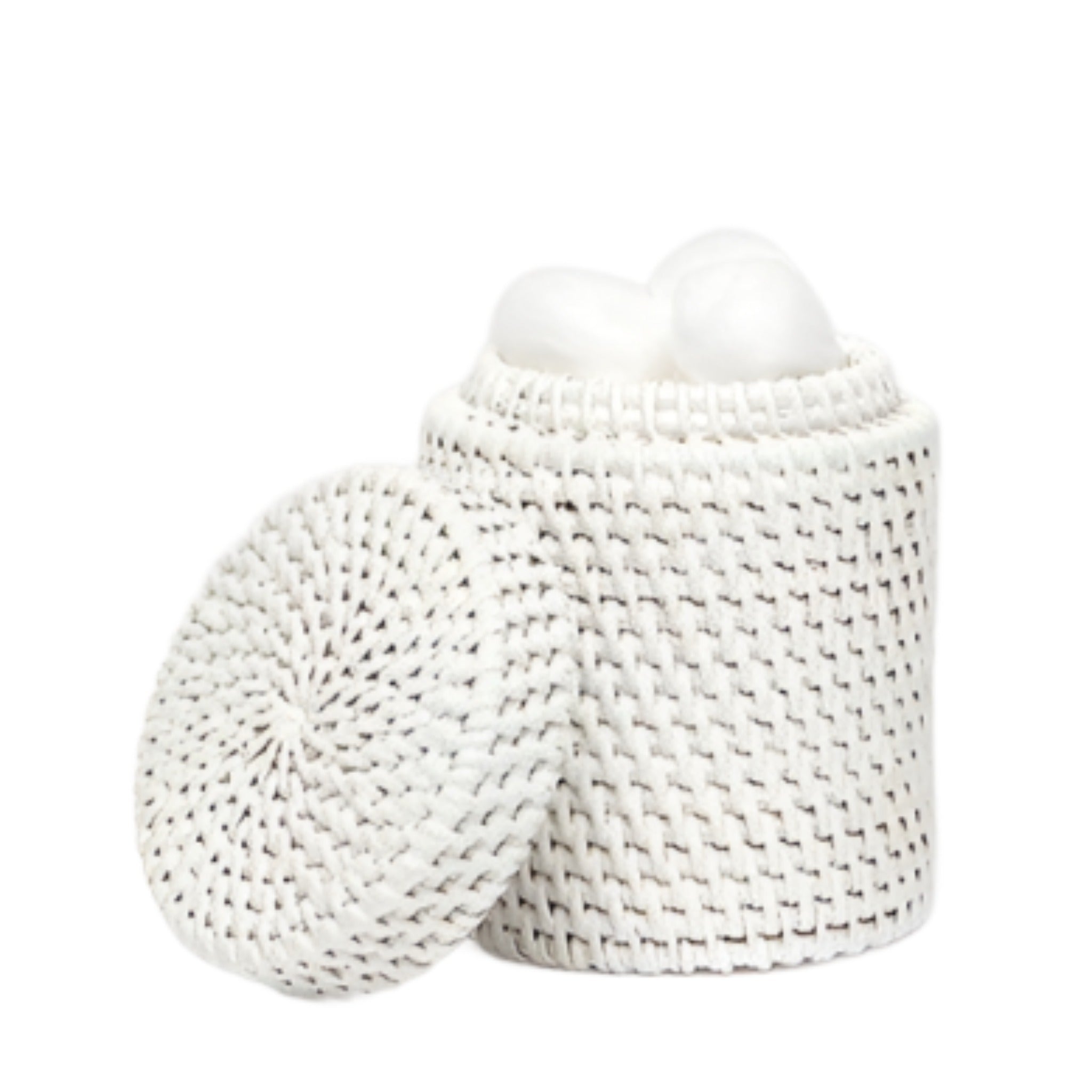 Dalton Woven Rattan Bathroom Canister in White