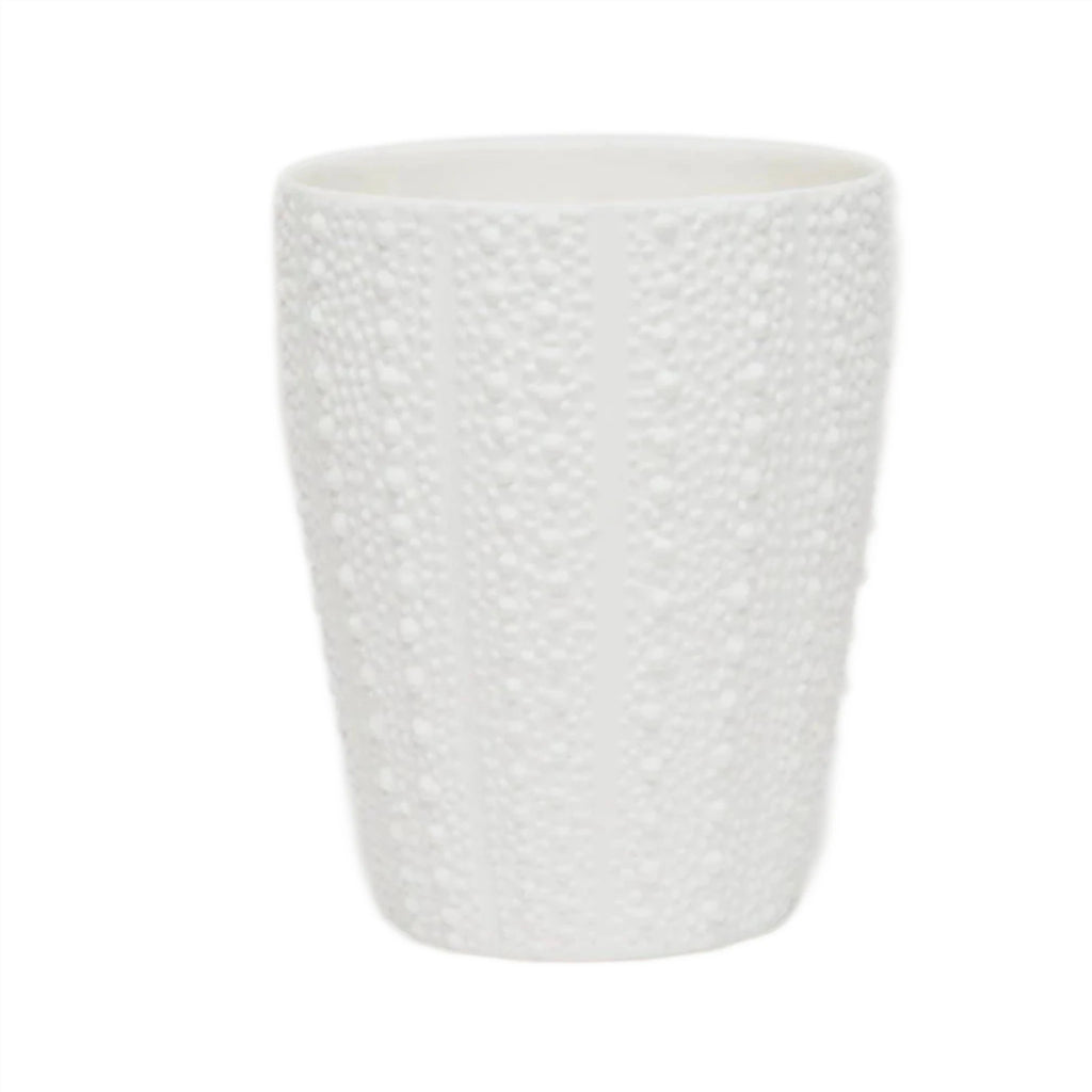 The beauty of the sea at your sink! Crisp, white porcelain adorned with a delicate sea urchin pattern provides a perfect combo of new and natural. The set’s curved edges add a softness and the canister’s lid resembles the unique sea creature itself.
