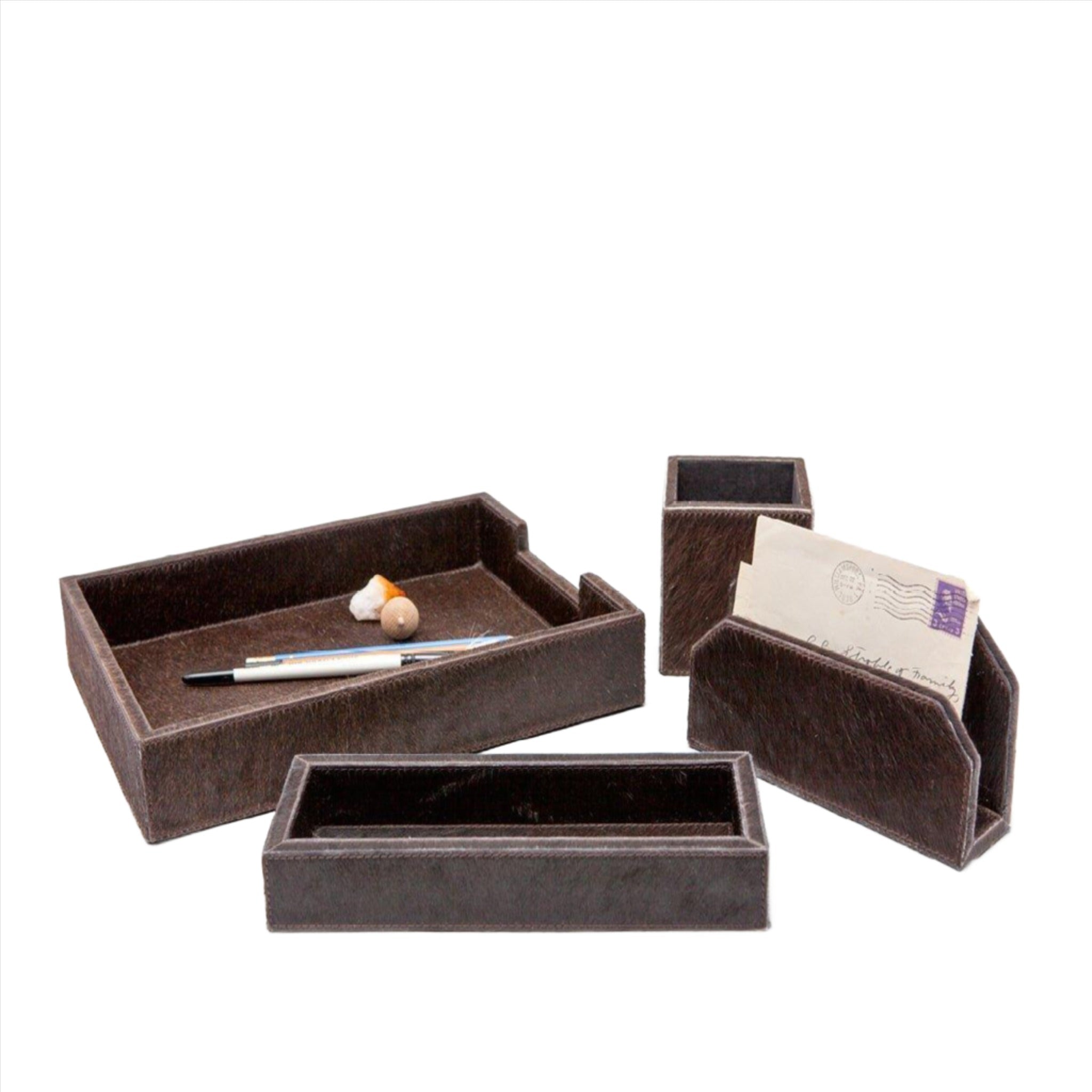 Hyde Desk Accessory Set in Brown Leather