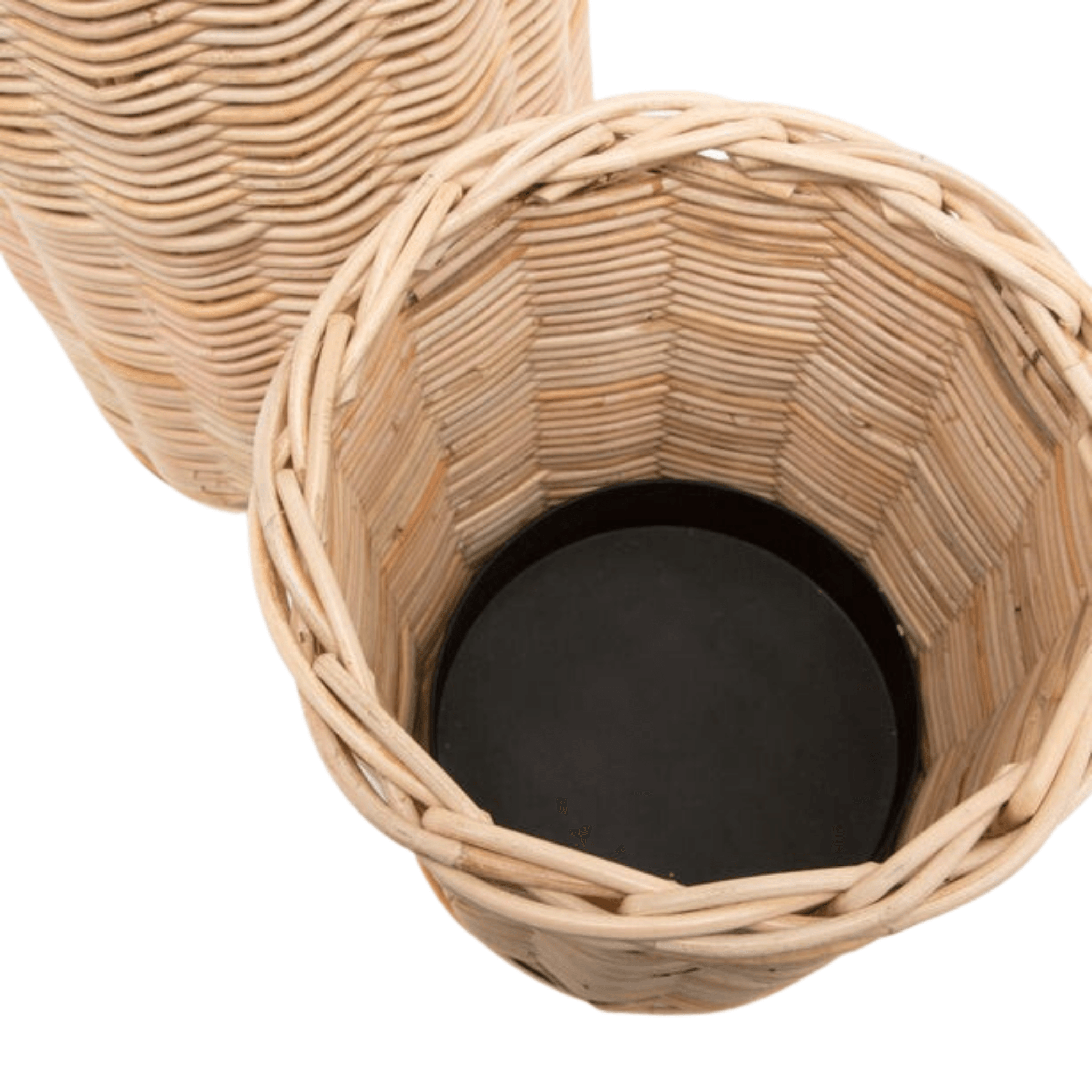Tightly woven rattan gives the natural-looking Malta umbrella stand its structure and texture. A zinc insert catches water to keep this basket-inspired umbrella stand completely functional.