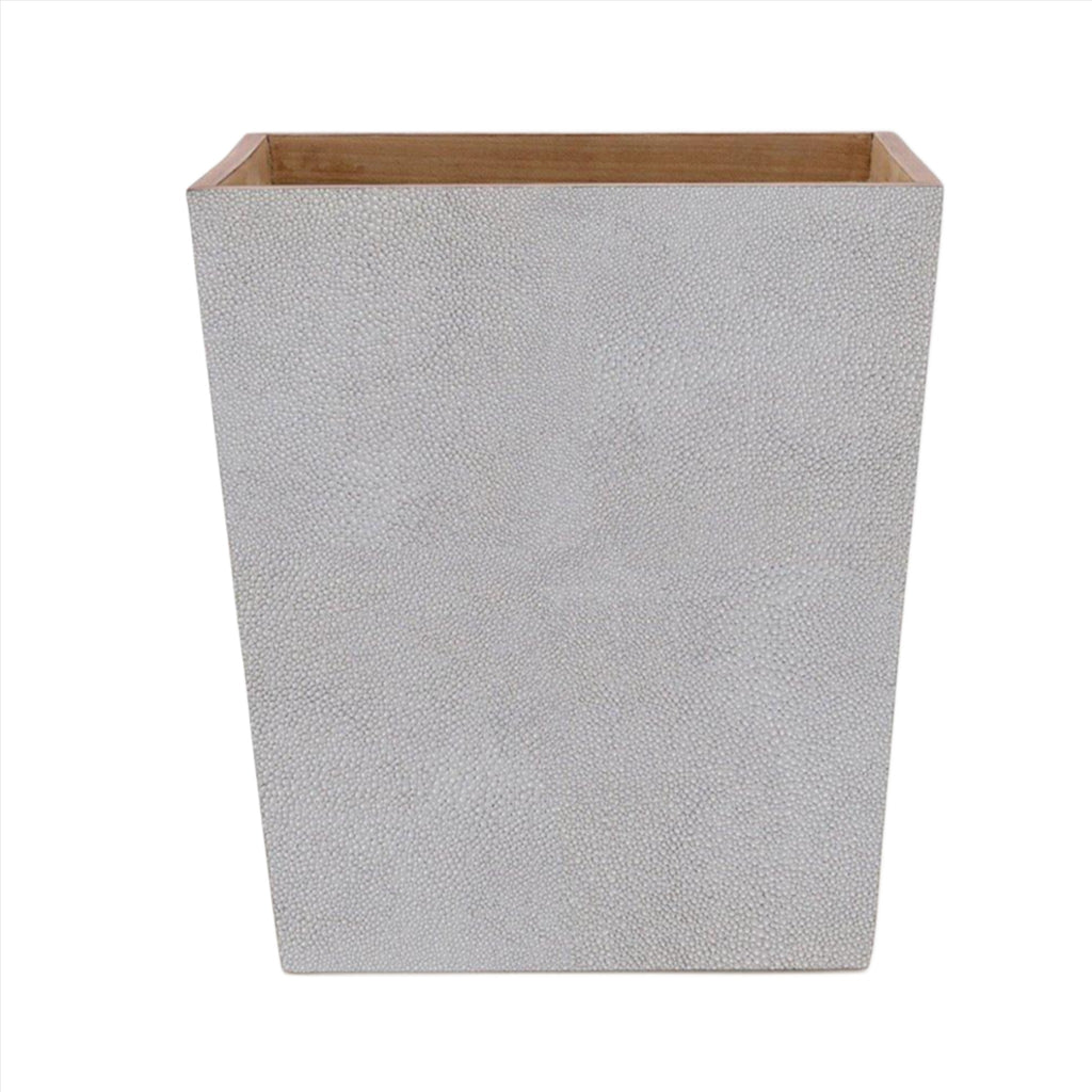Up a bath’s elegance and add an aesthetic edge with this striking realistic faux shagreen Manchester piece in a new, on-trend and timeless ash grey finish. Each piece is crafted to highlight the natural “eye” pattern inspired by authentic shagreen, and topped with a veneer trim. The item measures 10’’L x 8’’W x 11’’H. Wastebasket includes gray powder coated metal liner. It comes with optional coordinating tissue box cover. The tissue box cover measures 5.5’’L x 5.5’’W x 5.5’’H. Click images for greater details.