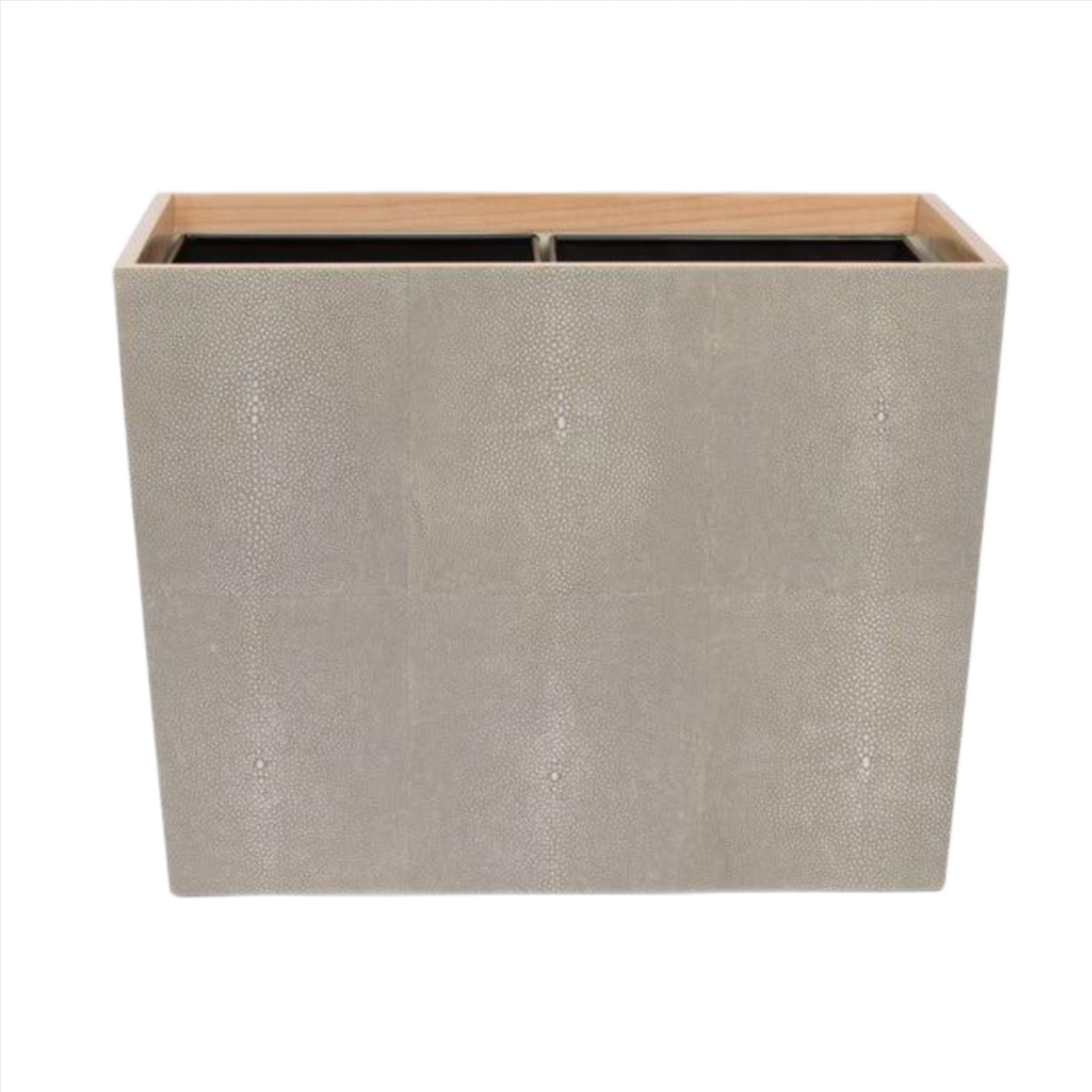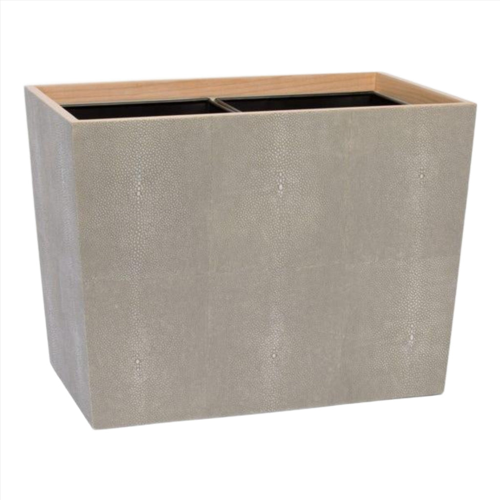 Every piece is crafted to highlight the natural eye pattern inspired by authentic shagreen, and topped with a veneer trim. Wastebasket liner included. Measures: 16"L x 10"W x 12"H. Click on images for more details.