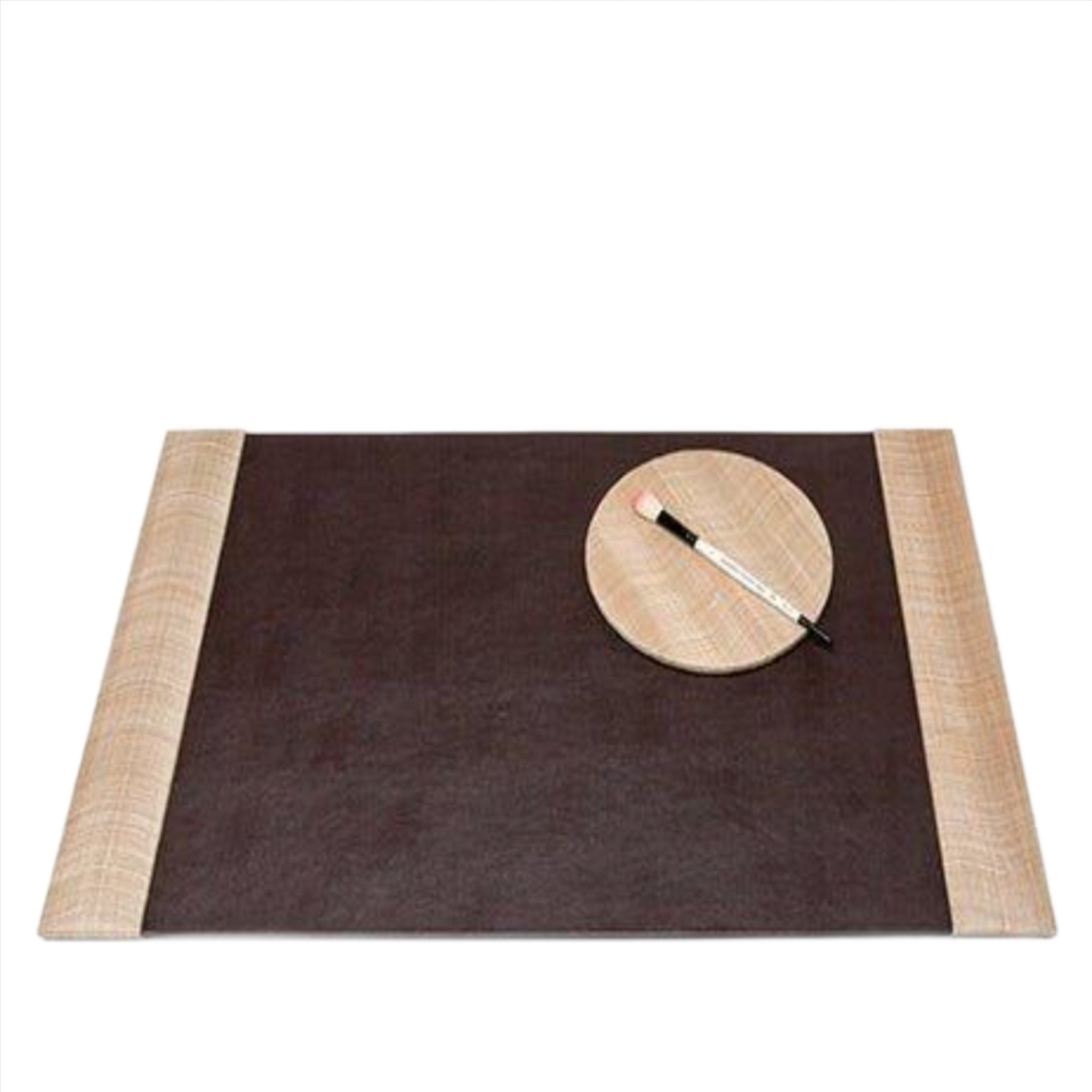 Bring movement to a workspace environment with the lively look of this buntal-covered Merida desk blotter set. Larger elements like the trashcan and magazine holder show off the woven fiber’s exquisite pattern. Opt for a subdued brown, a rich hue of mossy green, or a neutral natural. The set includes desk blotter and mouse pad. Desk Blotter measures 30"L x 18"W, Mouse Pad measures 8.5”D. Please note that there is a 25% restocking fee to return this item, plus the cost of return shipping. Click images for greater details.