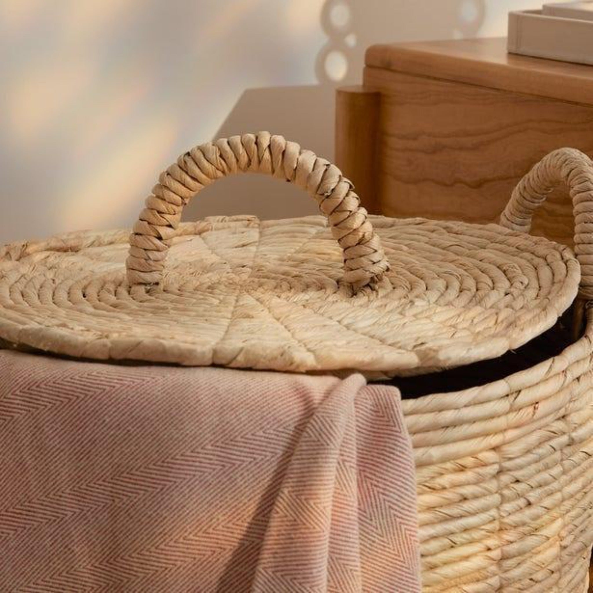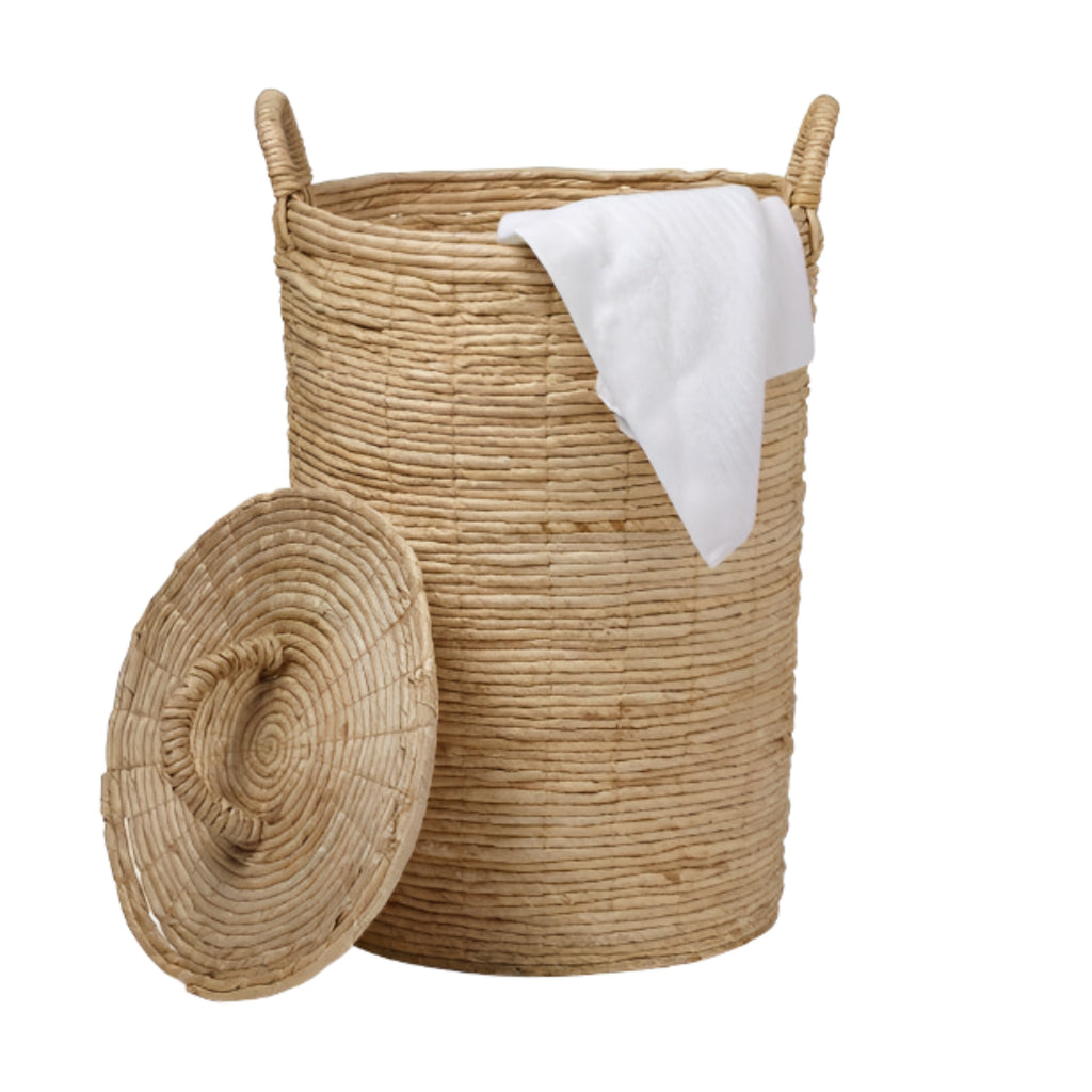 Zaria Natural Abaca Round Laundry Hamper with Lid and Handles