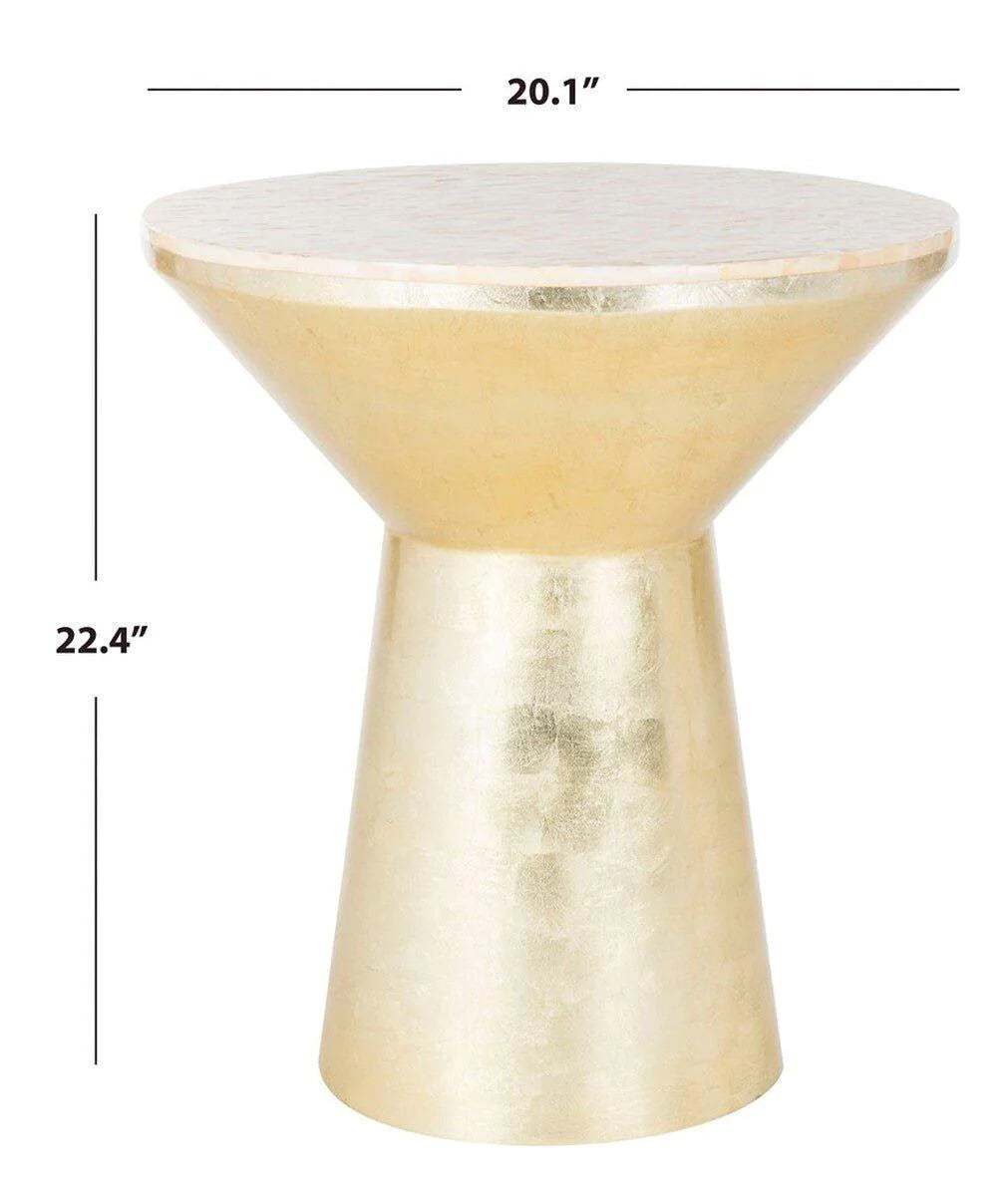 Alive with bold sculptural form, this contemporary mosaic round top side table elevates any living room with its radiant style. Finely crafted with faux mother of pearl and lacquer, its pink champagne and gold finishes set the stage for modern living.