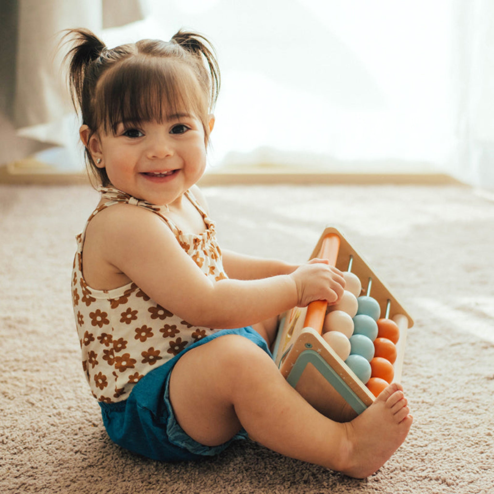 Looking at it from all angles, your little will love our Playful Triangle. The wooden triangle comes complete with abacus, shape sorter with 3 shaped blocks, character maze, gears, and a mirror that doubles as a door that opens to store and retrieve blocks. Neutral colors and lightweight, the Playful Triangle is the perfect gift for baby showers, birthdays, or any occasion! Travels well for quiet play in the car or on a plane. Pint-sized for your half-pint!