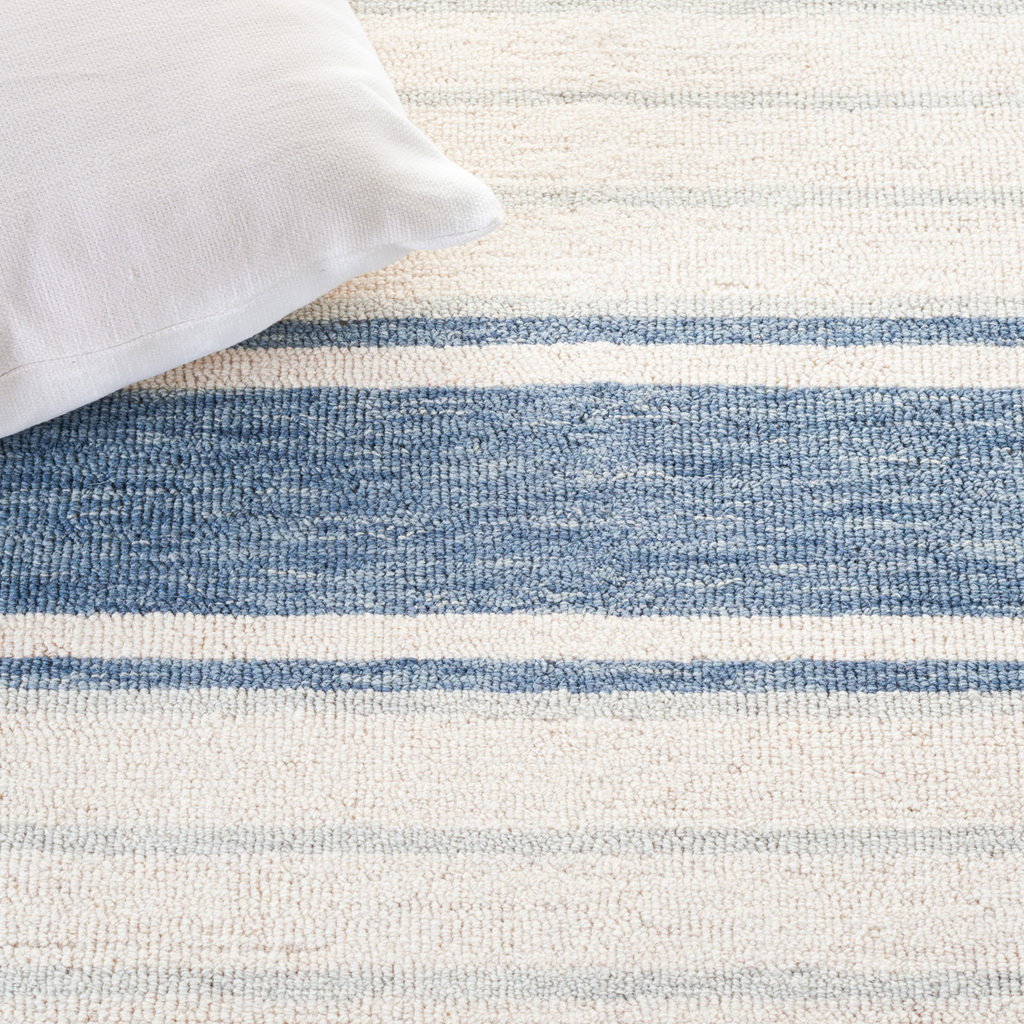 Ralph Lauren Blue & Ivory Hand Tufted Striped Area Rug
