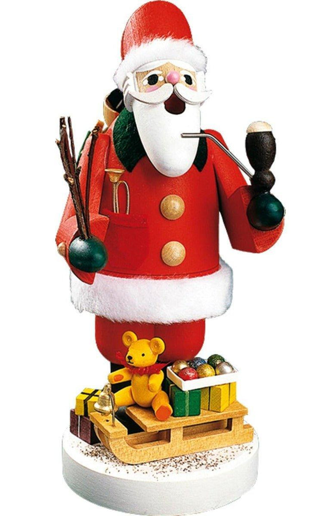 Bringing traditional European Christmas decor adds magic to holiday celebrations. This German made smoker is sure to become a family heirloom to be passed down from generation to generation. Made in Germany. This incense burner features santa with a sleigh loaded with toys. Everyone will look forward to unpacking this holiday decor year after year. Measures: 7.5"H x 4"W x 5"D. Click on image for greater detail.