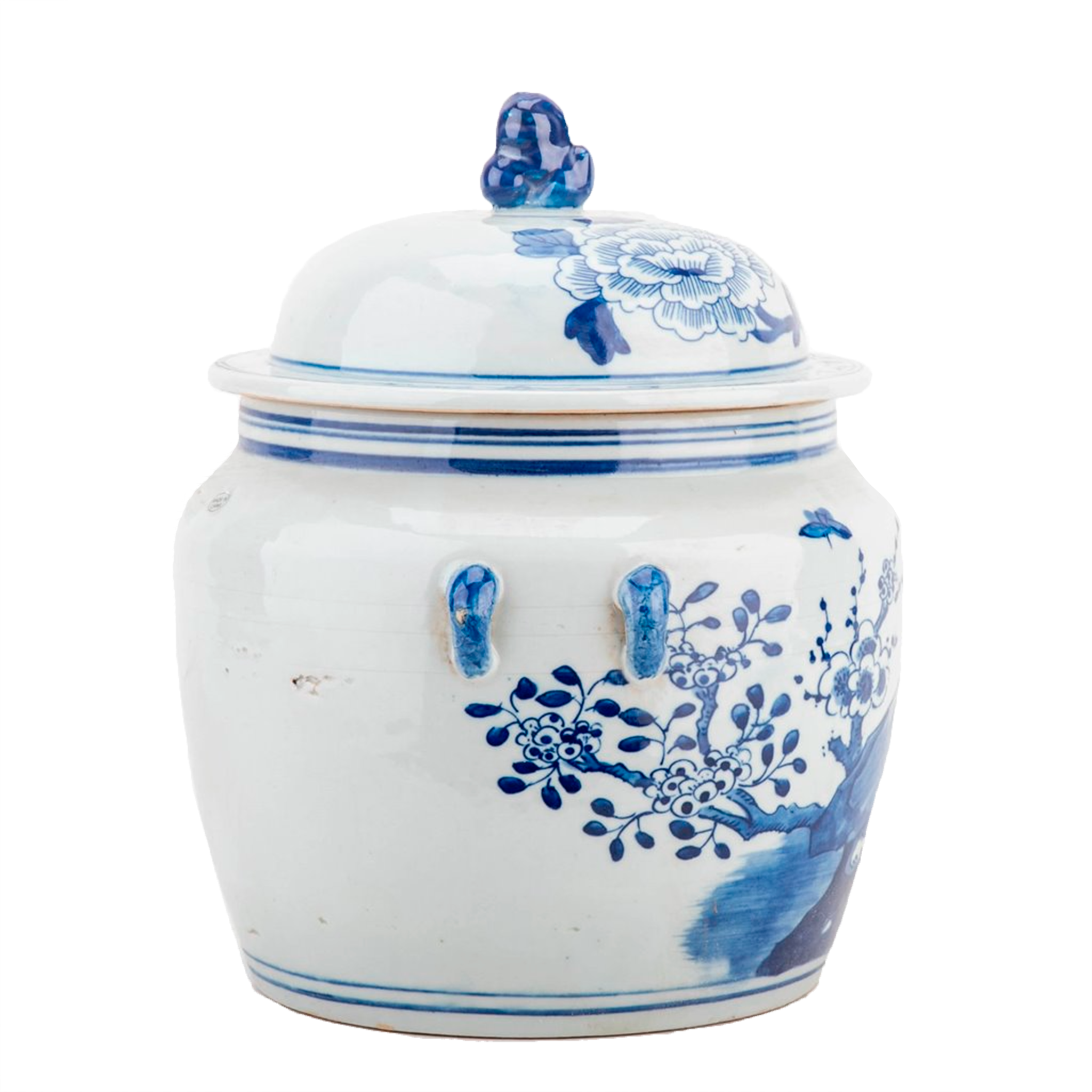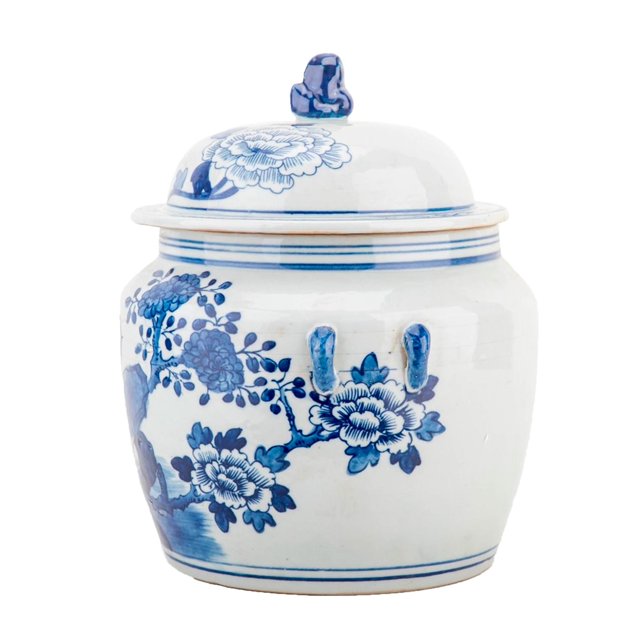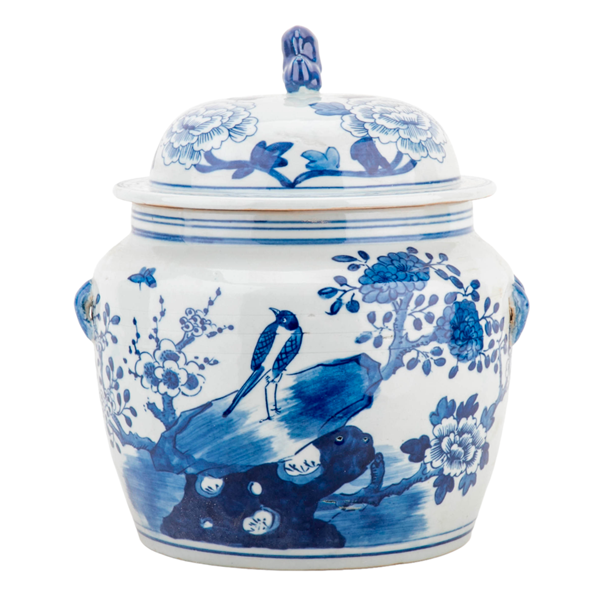 The Round Cover Lid Jar features a delicate hand-painted design of blossoms and birds, blending natural beauty with classic elegance. Ideal for storage or display, it adds a refined, artistic touch to shelves, countertops, or entryways.