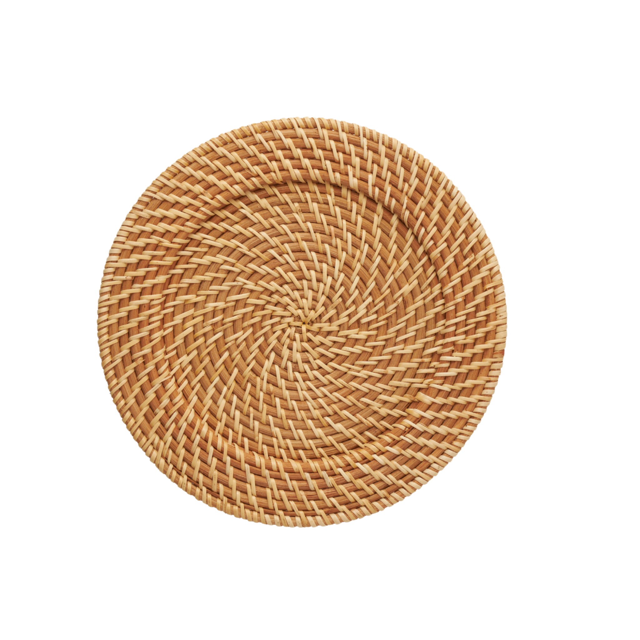 A hand-woven sunburst pattern gives Roxy a cheery vibe, and the strength for heavy lifting at meal time. Can be used as a placemat or charger.