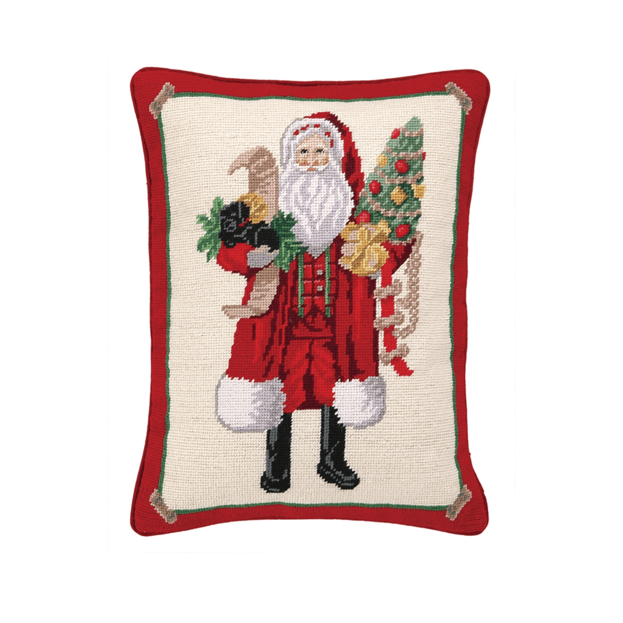 This handcrafted accent pillow features a needlepoint santa with puppy. Includes poly insert with zipper closure. Please note holiday items cannot be returned. Click image for greater detail.
