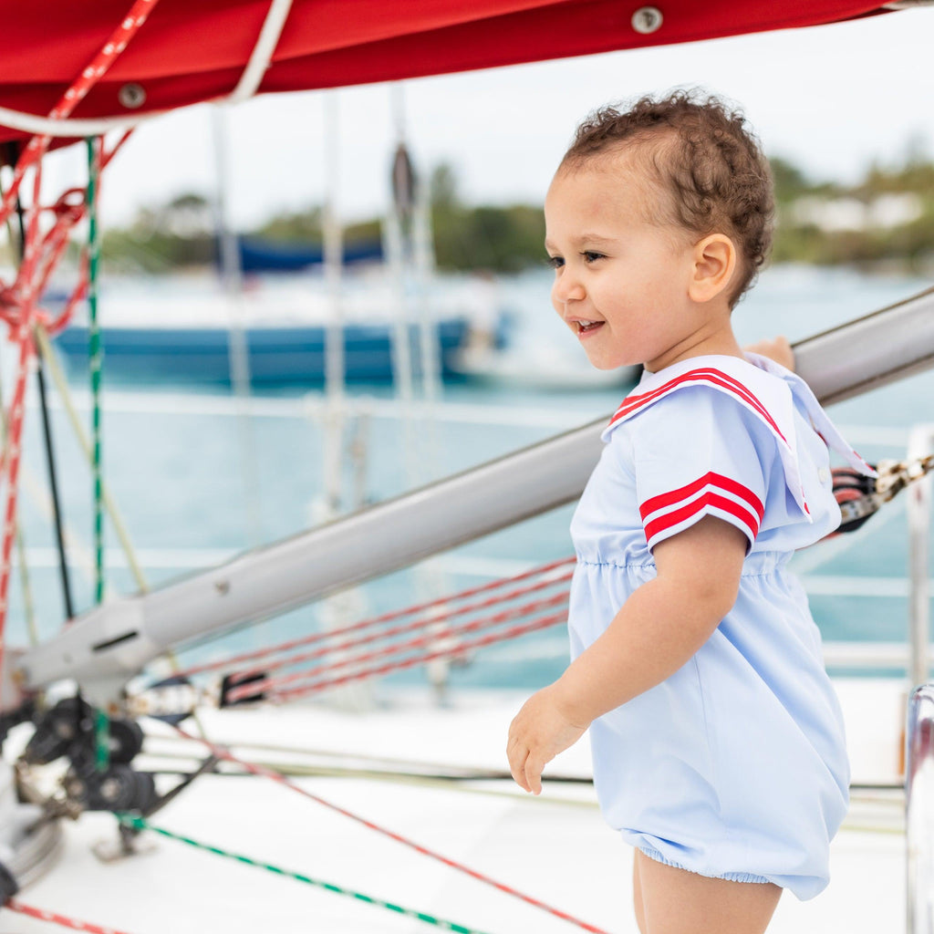 Our Saylor Bubble is made of the softest bamboo, which will keep your little one cool and comfortable all summer long. Featuring snaps in the stride for easy diaper changes, and elastic at the waist for comfort, it's fully lined and fully adorable.