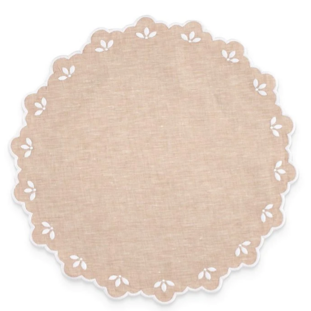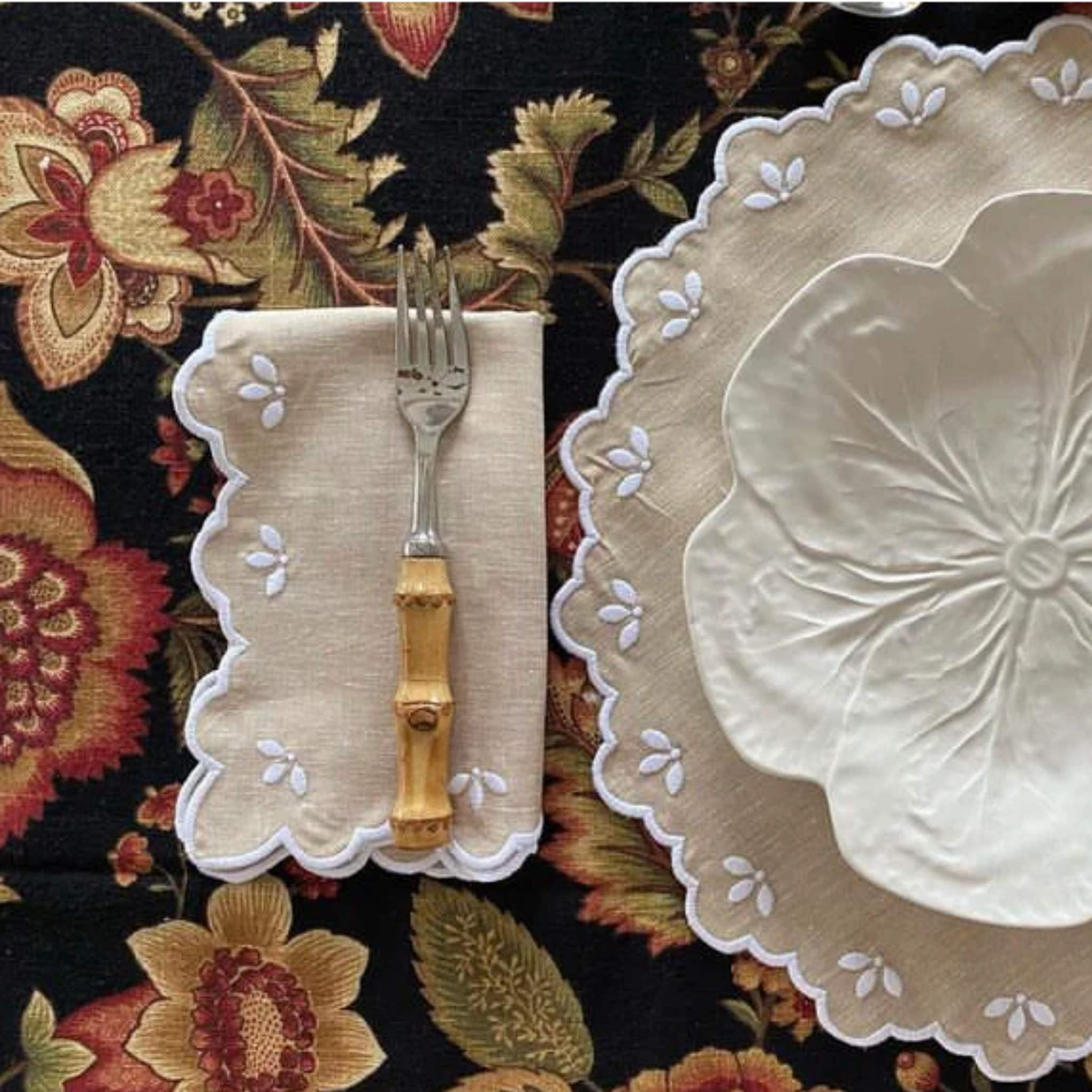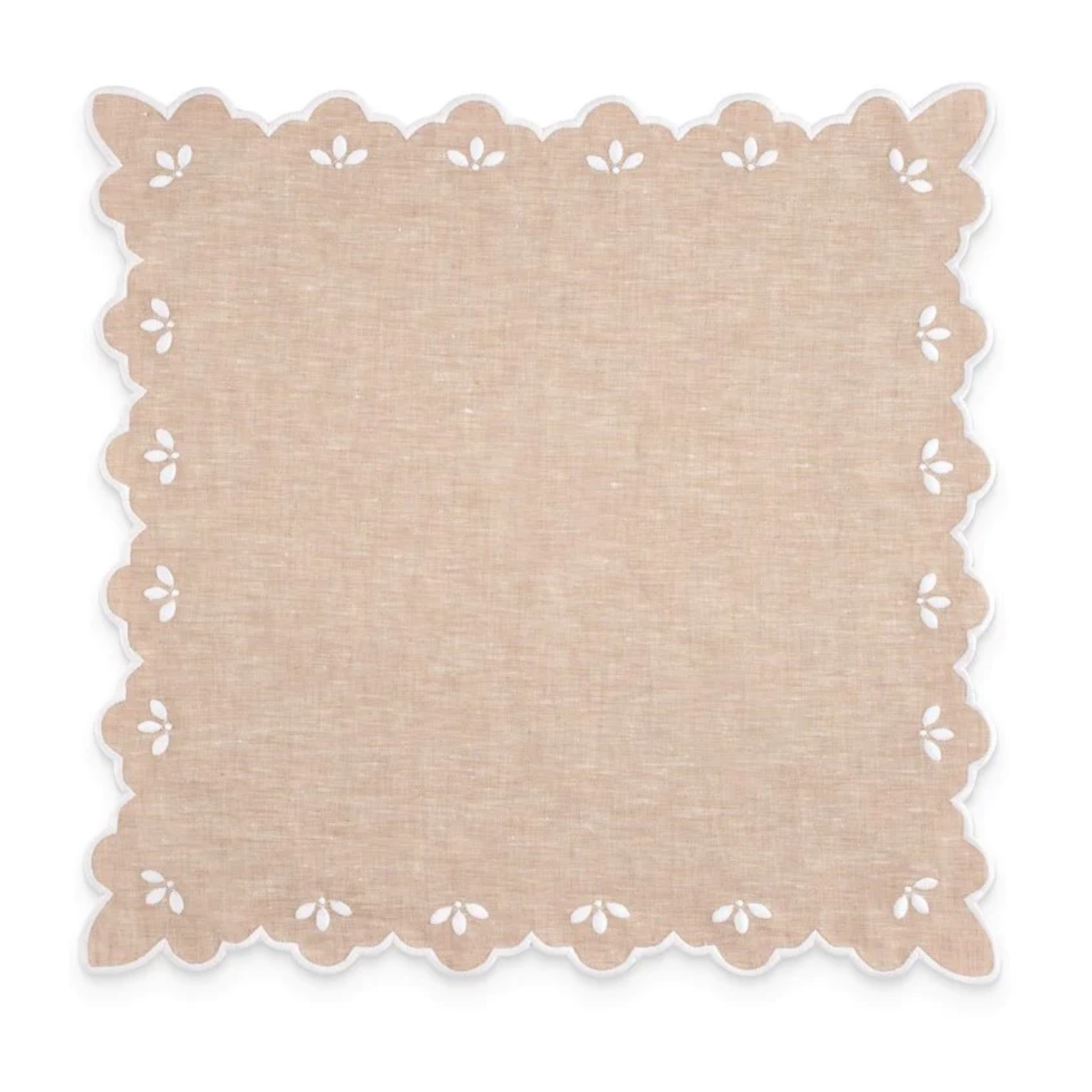 Scalloped Edge Embroidered Sand Linen Dinner Napkin