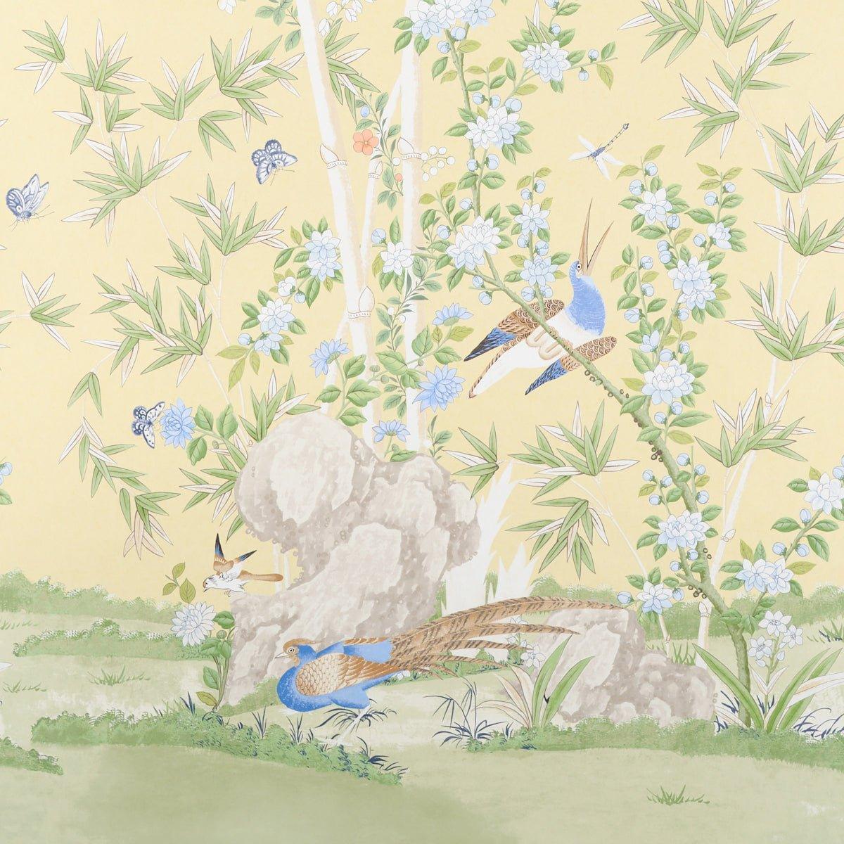 Based on a rare 18th-century document and created by one of Europe’s premier engravers, Brighton Pavilion in yellow is a Miles Redd wallpaper with a 12-foot repeat that is available in coordinating panels of fabric.