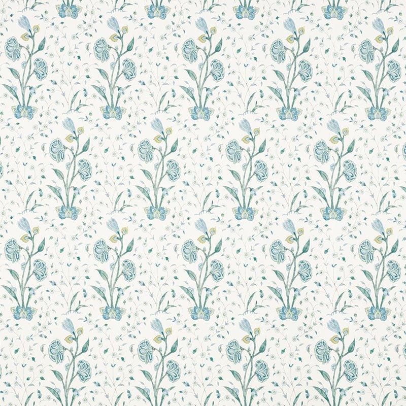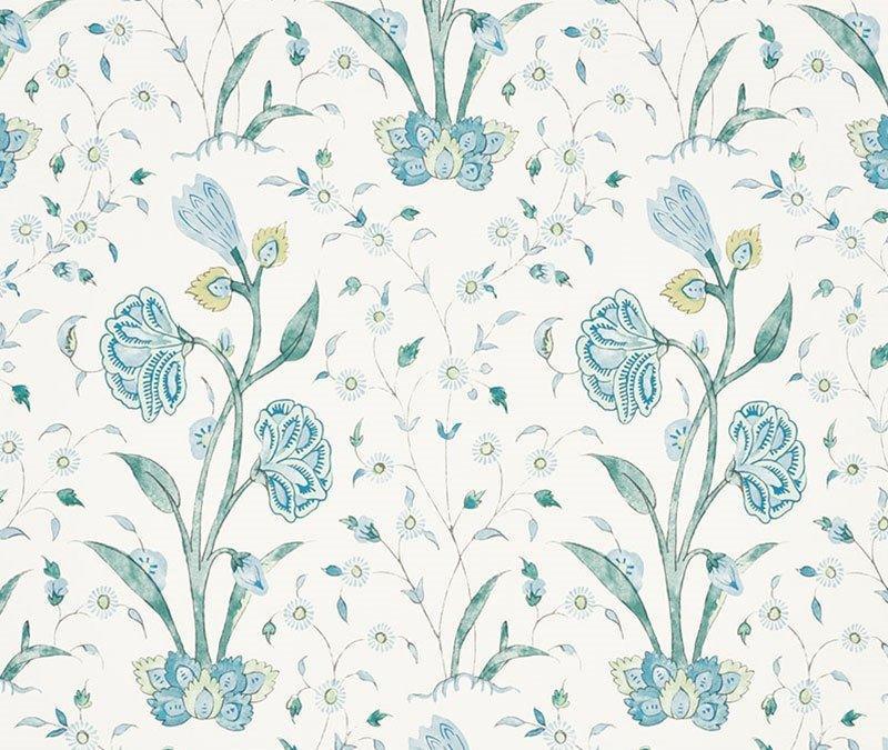 A simple, stylized floral inspired by traditional Indian motifs, this lovely, large-scale pattern has the nuanced look of a hand block print.