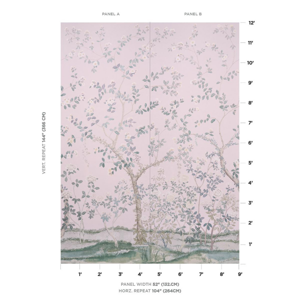 English garden meets Chinoiserie in this stunning design. Originally drawn to scale on French canvas, this vast floral pattern is comprised of two 12' panels.