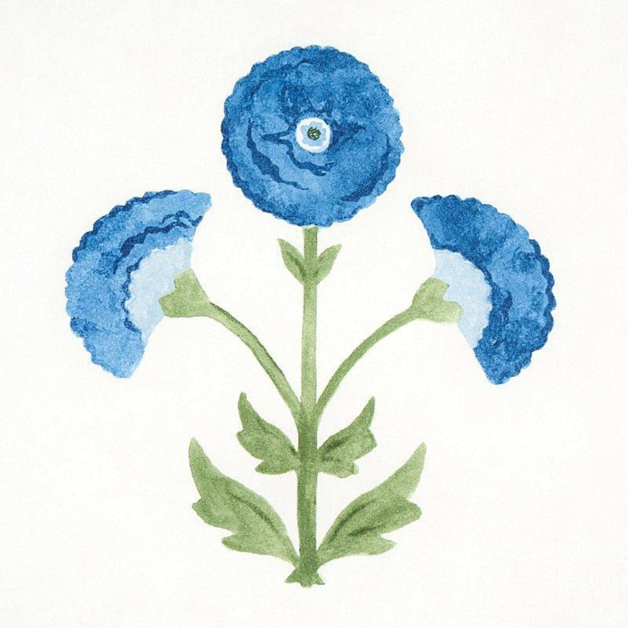 Inspired by traditional Indian hand-block designs, royal-colored Saranda Flower wallpaper features stylized flowers printed on fibrous wallpaper for a painterly bouquet full of color and depth.