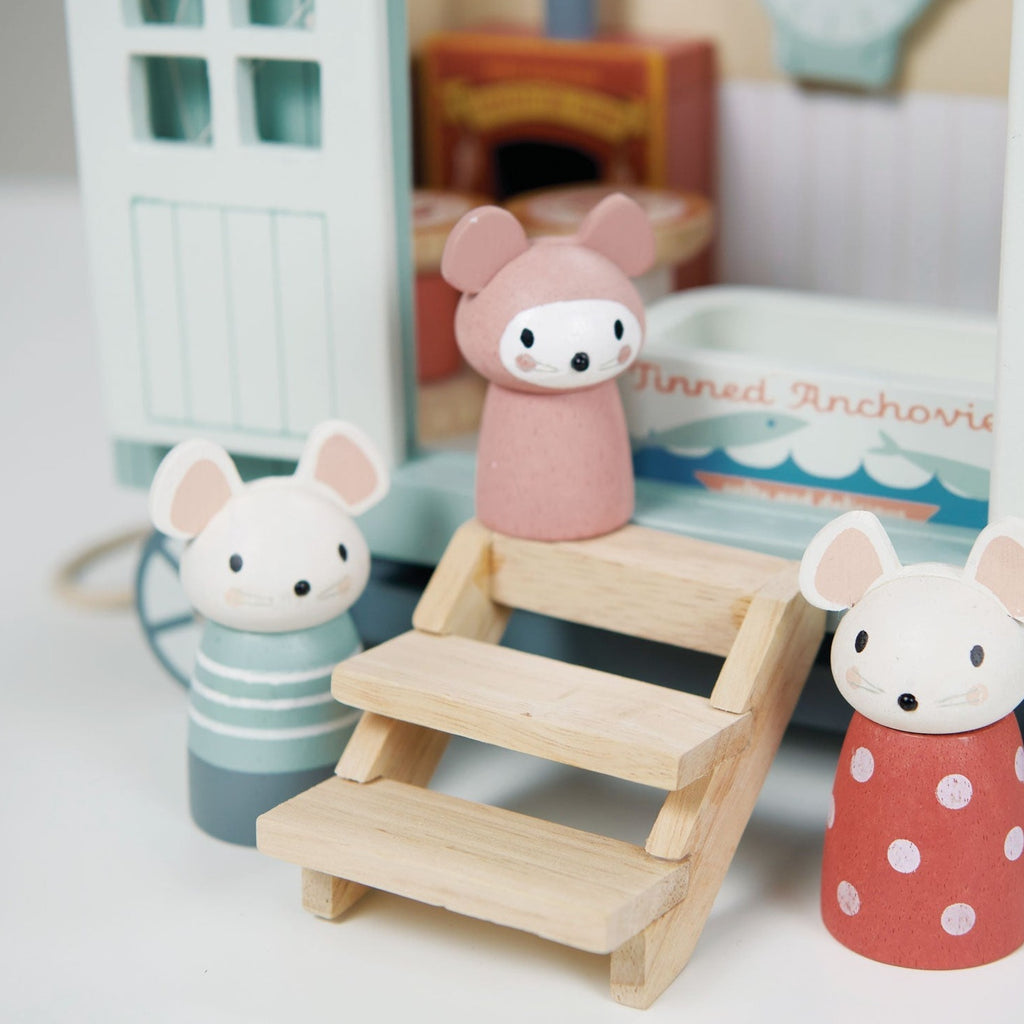 A wonderful addition to our Merrywood Tales collection. This shepherd’s hut is the perfect glamping staycation for our new family of mice. They have borrowed some human-sized trinkets to use as essential furniture in their hut. A teacup makes