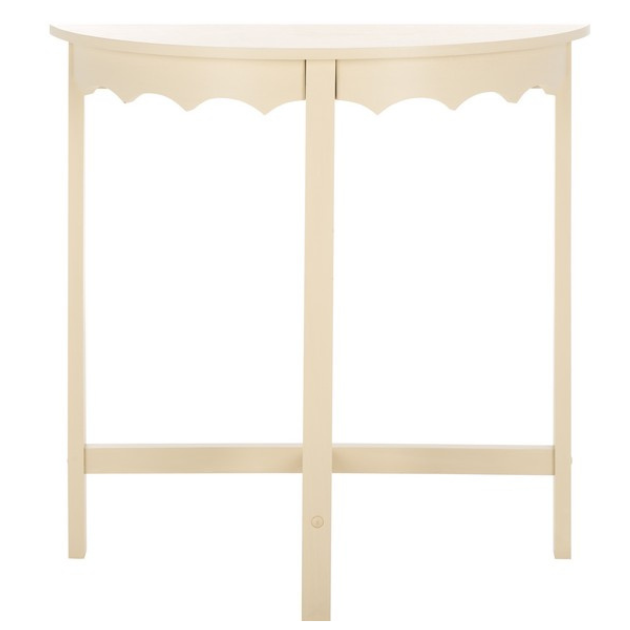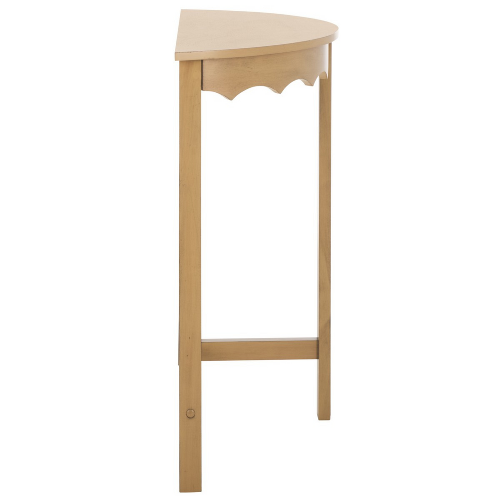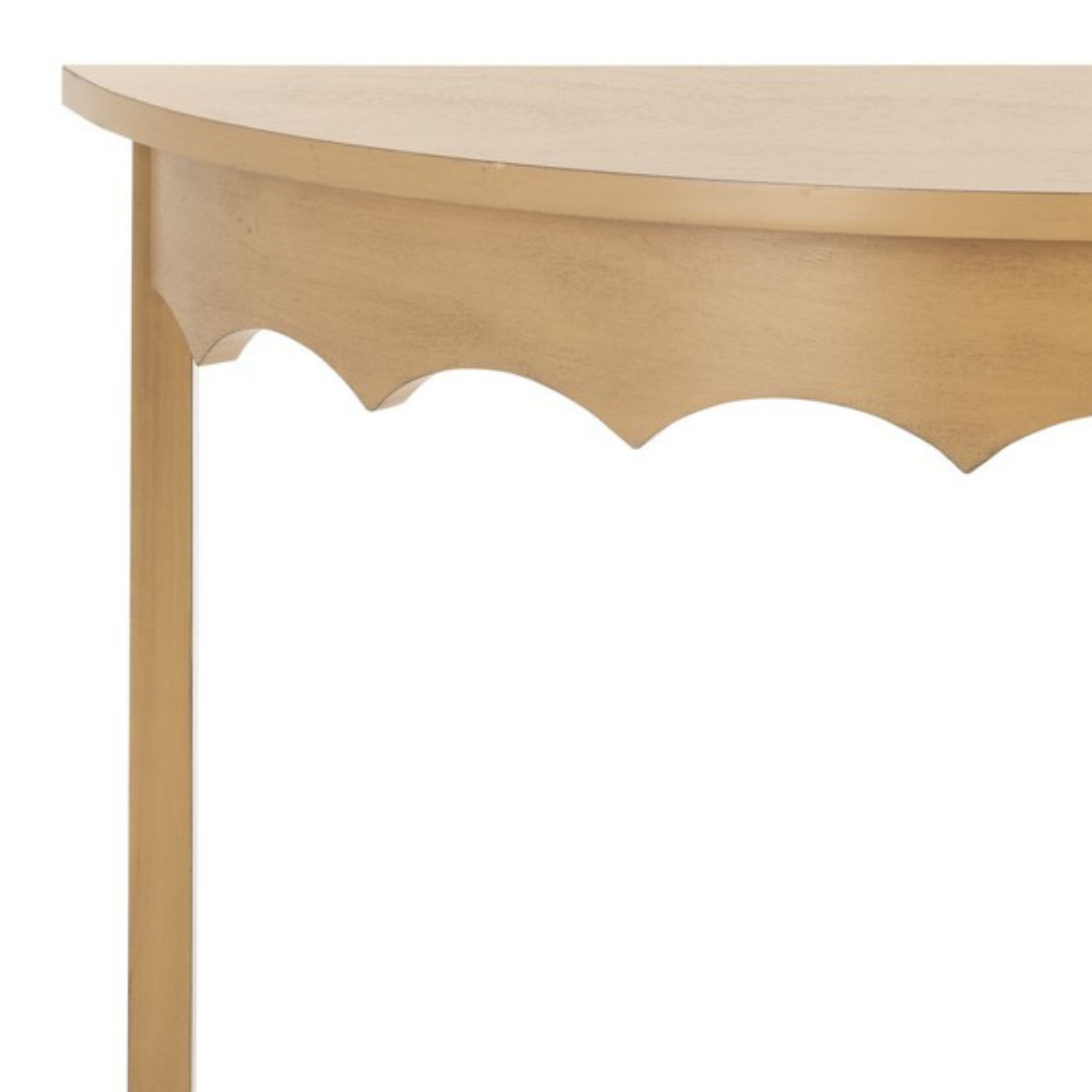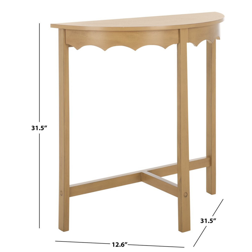 This gracefully crafted console showcases a distinctive half-moon silhouette, bringing a unique and refined accent to any space. Finished in a soft Sand or Brown tone, it offers exceptional versatility, effortlessly complementing a variety of interior styles. Ideal for hallways, entryways, or living rooms, it’s a stylish addition wherever it's placed.