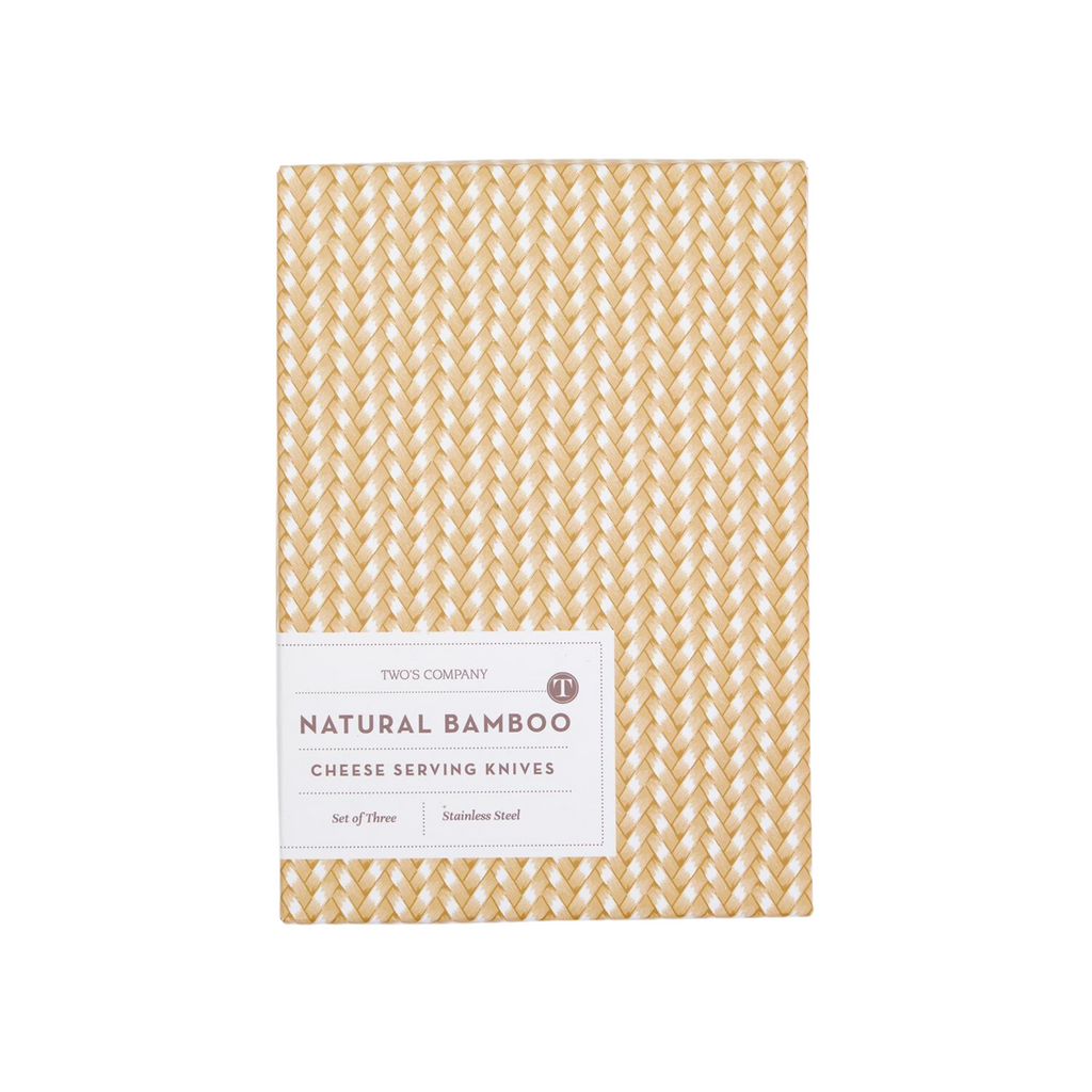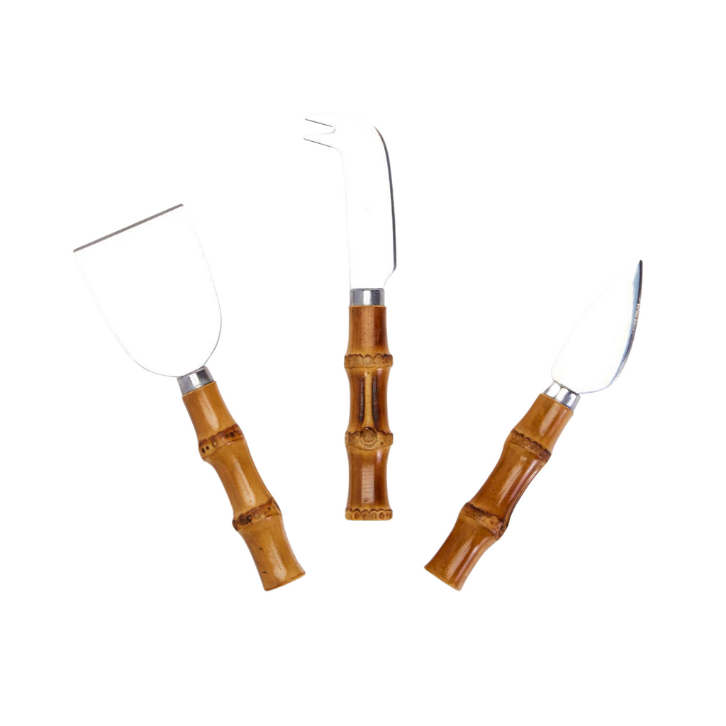 Set of 3 Natural Bamboo Handle Cheese Knives in Gift Box