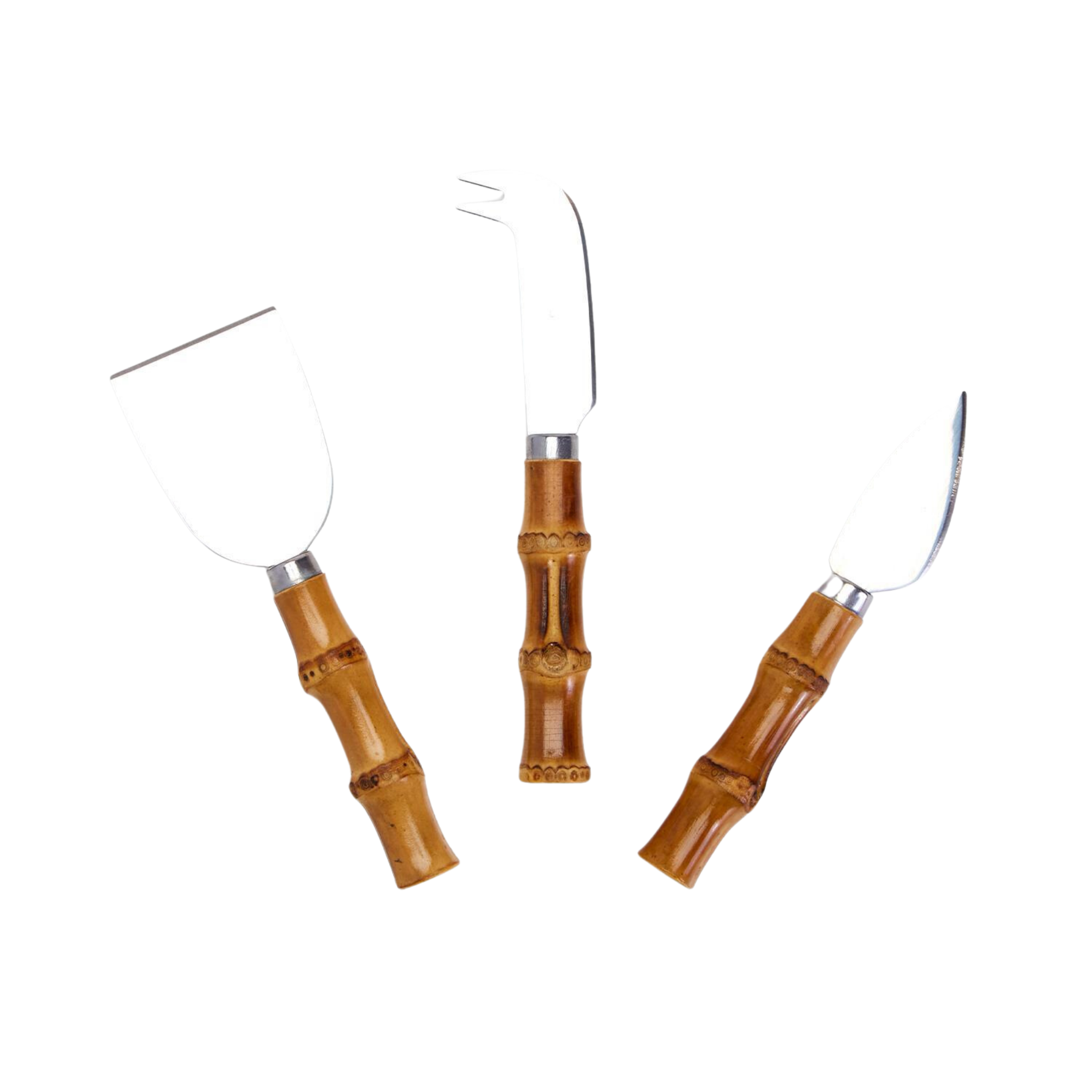 Any cheese lover or charcuterie preparer needs this set of 3 cheese serving knives. Each knife has a wonderful natural bamboo handle giving off such a great natural affect. Slice and serve only the best cheese with this great set. Click images for greater detail.